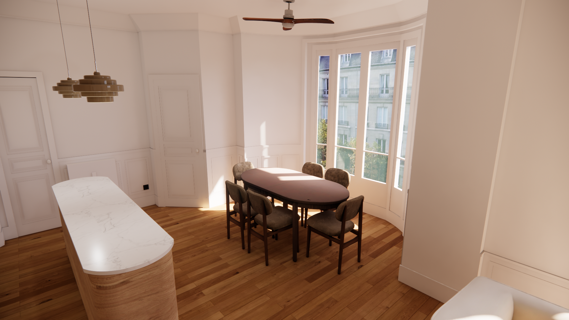 interior shot turn this 3d render into a realistic photography for an interior design magazine don t change objects shape or posistion it s 2pm time in may soft natural light