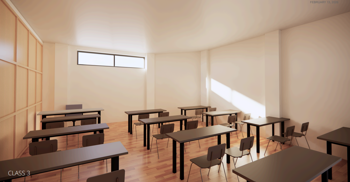 exterior shot leave this room size and window but make a nice class according to moodboard