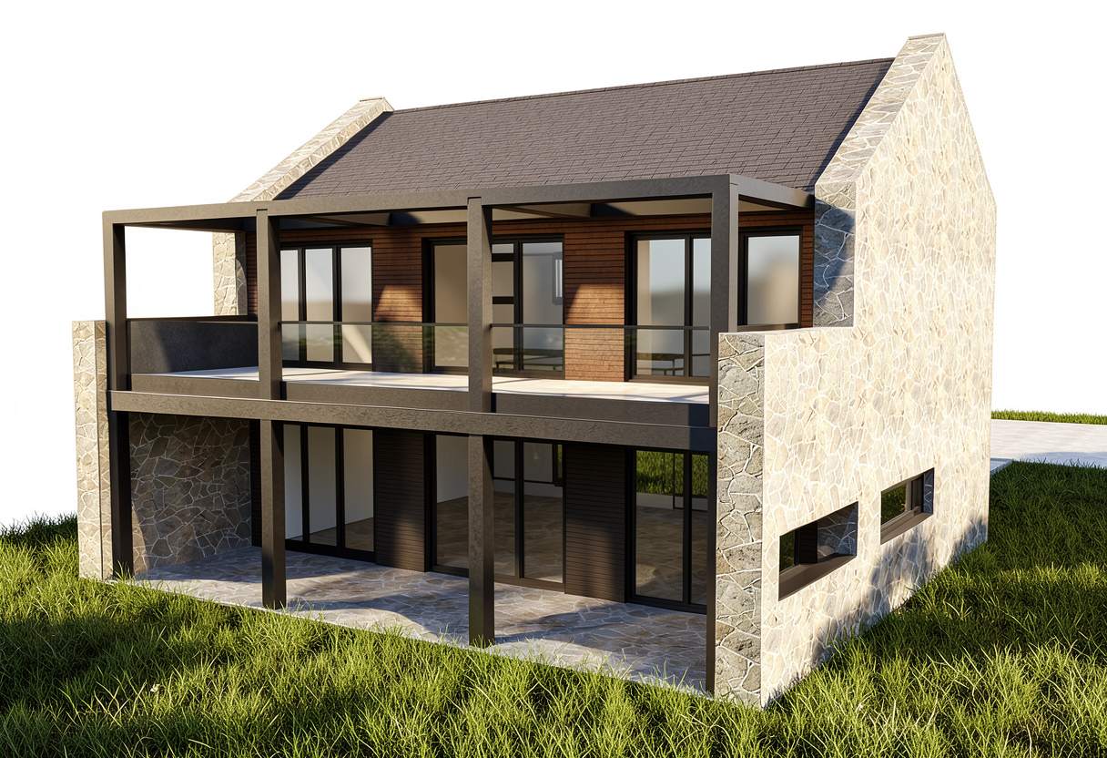 render only visual geometry maintain and enchance surface texture and materials and colours white background only grass around