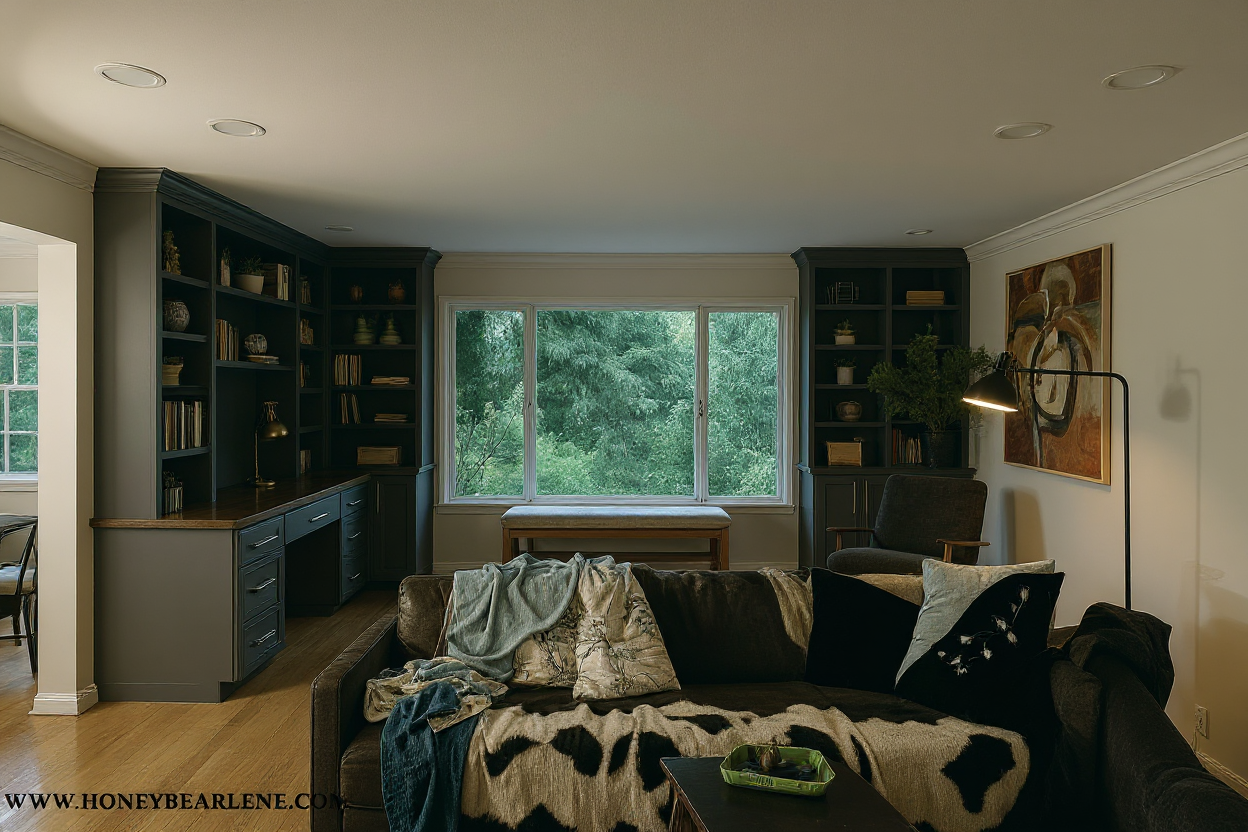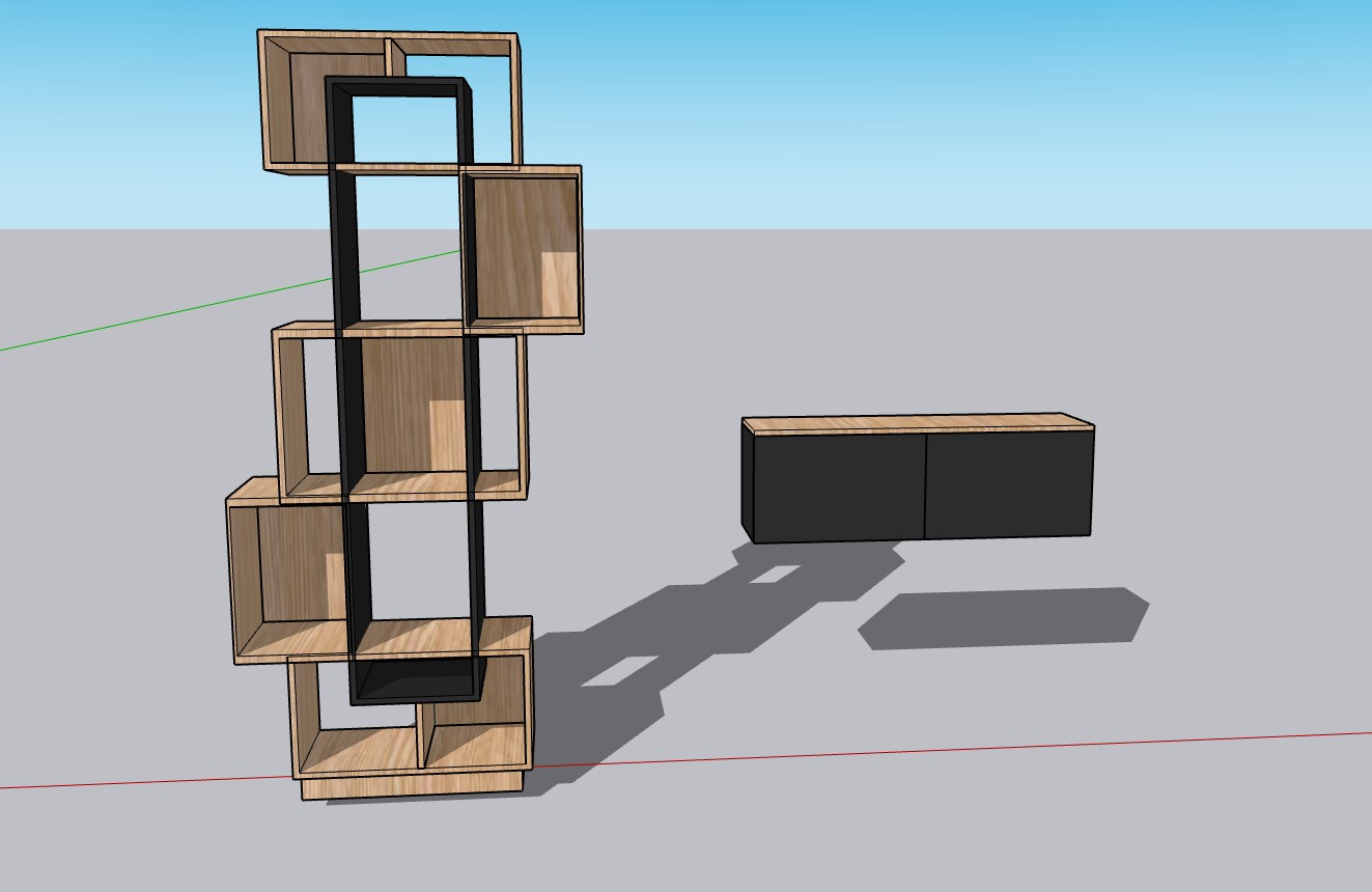 create a 3d render blank background floating black cabinet with wood top to match the shelves