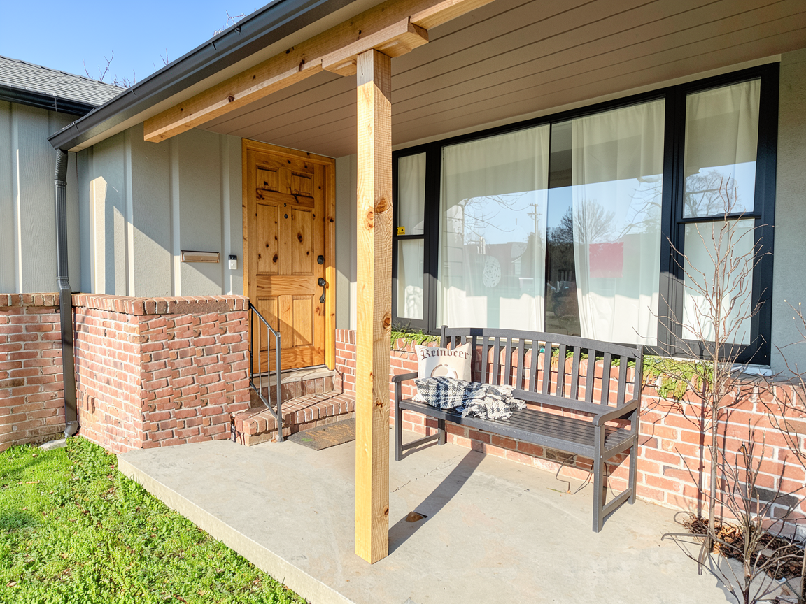 remove christmas garland and wreath make front door a stained natural wood don t do any structural changes