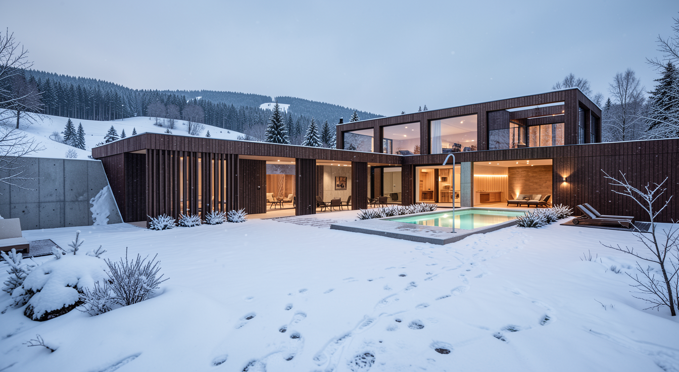 photorealistic interior photography style natural dynamic range balanced exposure slight softness in highlights realistic material imperfections shot as if on a professional full frame camera with natural interior lighting reduce window brightness and prevent overexposed exterior light wall material at far end is corten steel dark and earthy looking