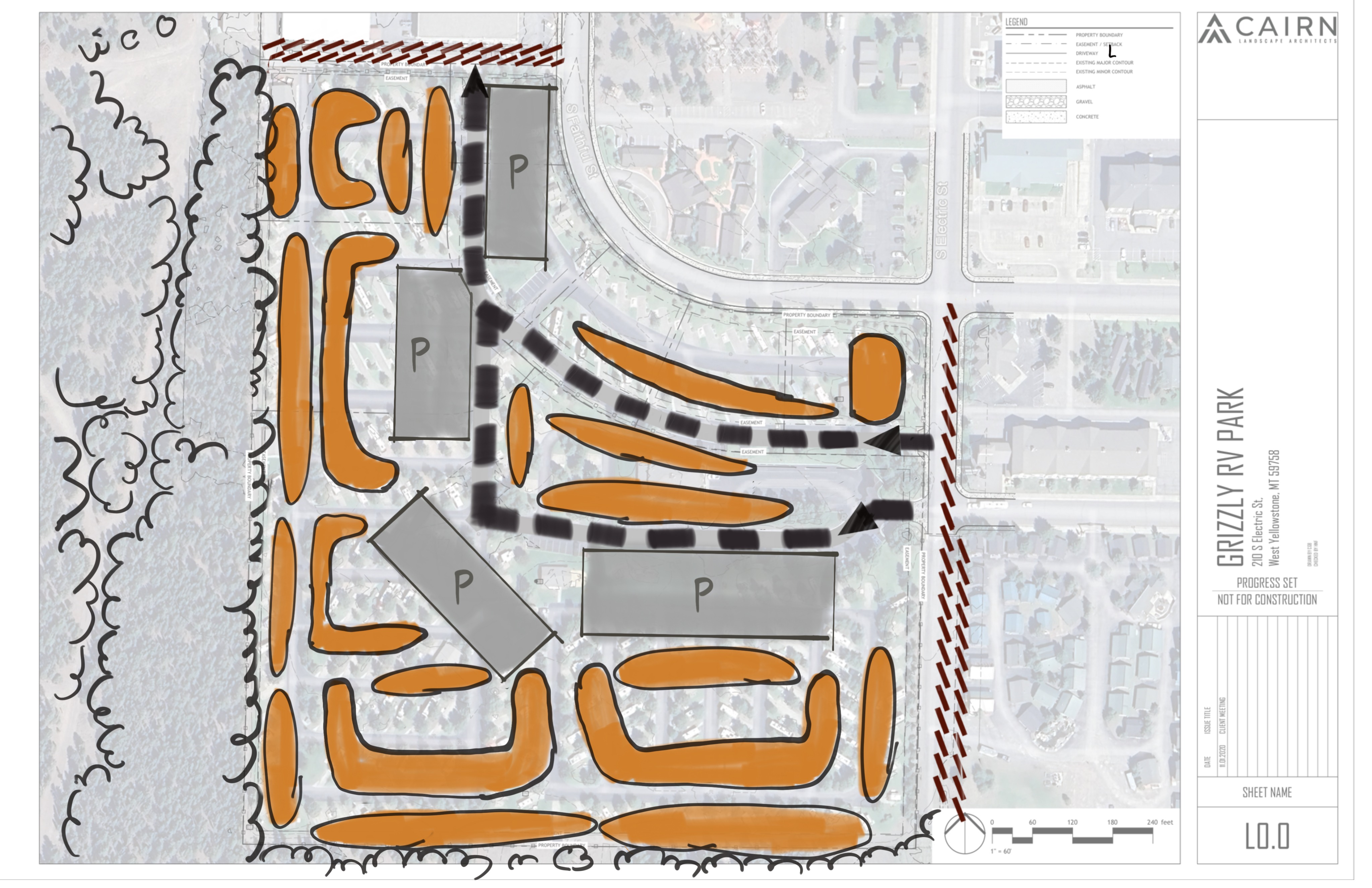 clean up my hand sketch still make it look like a hand sketch but add some depth and shadows clean up the arrow linework and add shadows add green shades to the trees on the side and bottom and make the aerial pop keep the orange tone the same