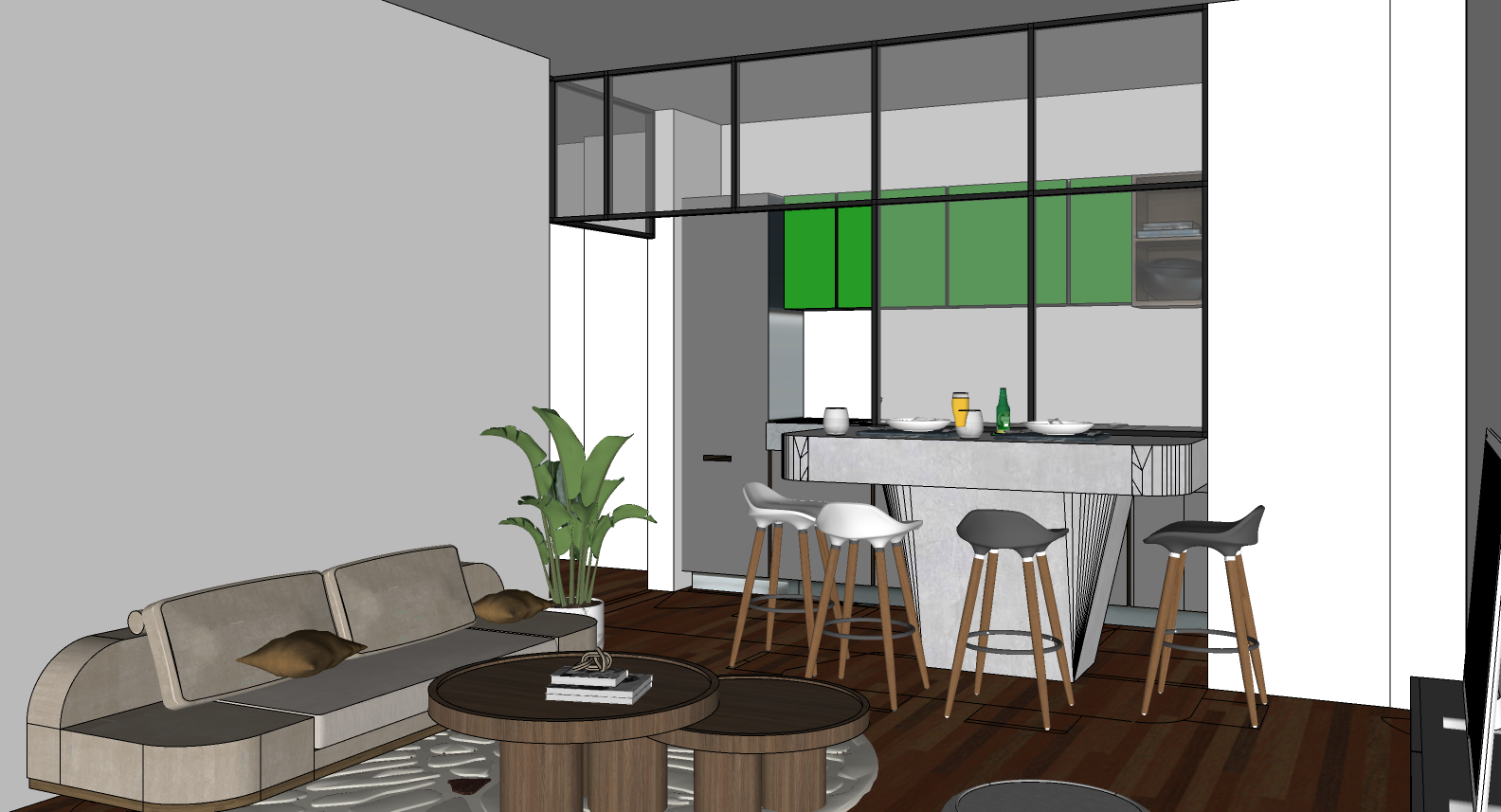 transforms the provided image into a high end photorealistic rendering with warm golden hour atmosphere soft and bright lights that keep everything in exactly the same proportions same wall finishes same materials and same spatial configuration do not move or alter the geometries of objects textures colors or furniture positions the light comes from the right