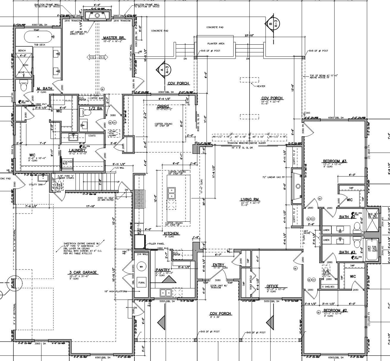 convert this floor plan into a architectural isometric 3d view of a full house show the space from an elevated angle with furniture walls and details visible do not add walls garage entry is on the left side use the same furniture as shows on the plan do not change the orientation of the floorplan