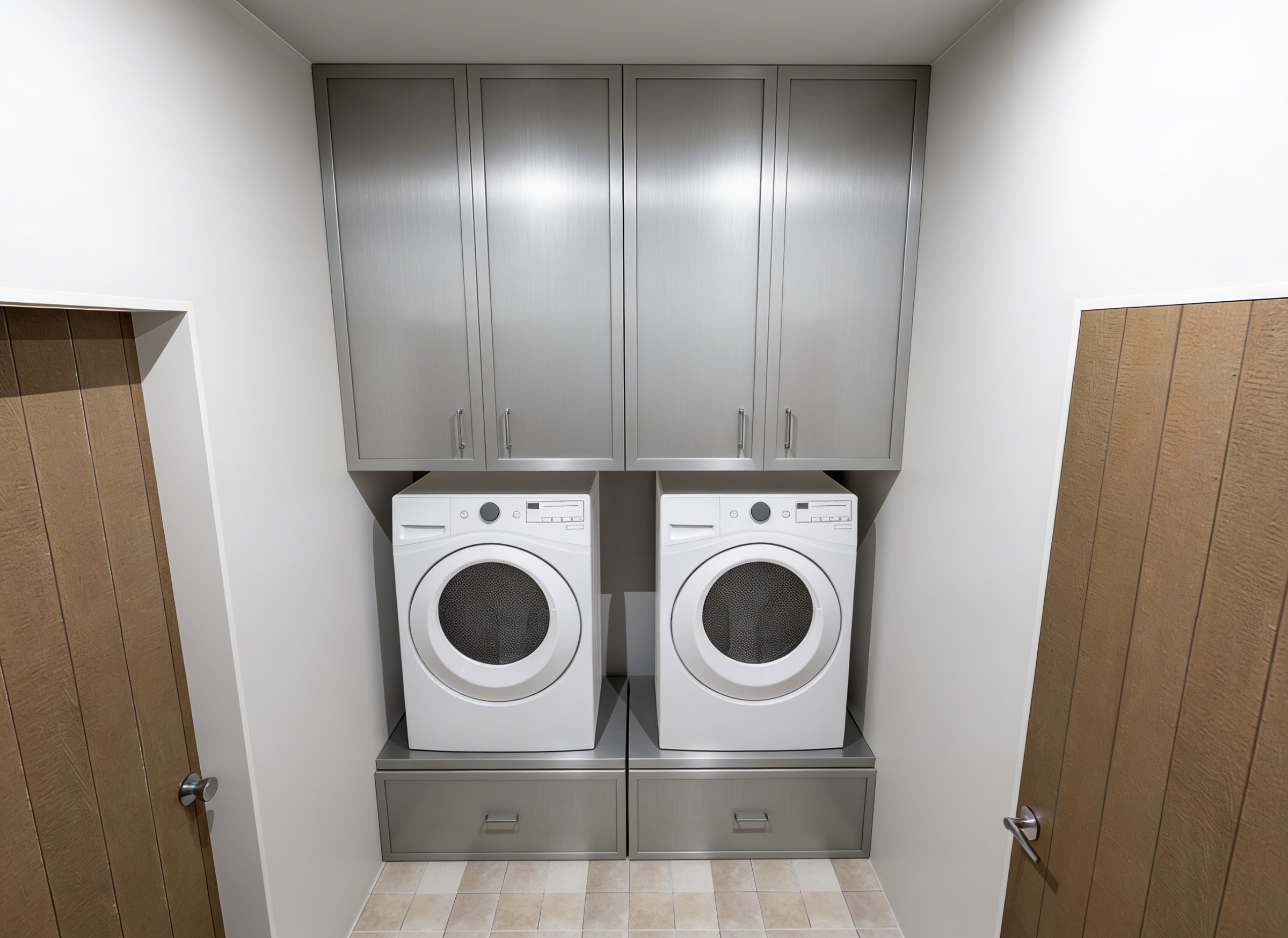 turn on the vanity light and add integrated led lighting in the shelves and under the hutch over the toilet and turn on the recessed lights do not take the hutch all the way to the ceiling make the frame around the mirror in polished silver and add backlihgting behind the mirror