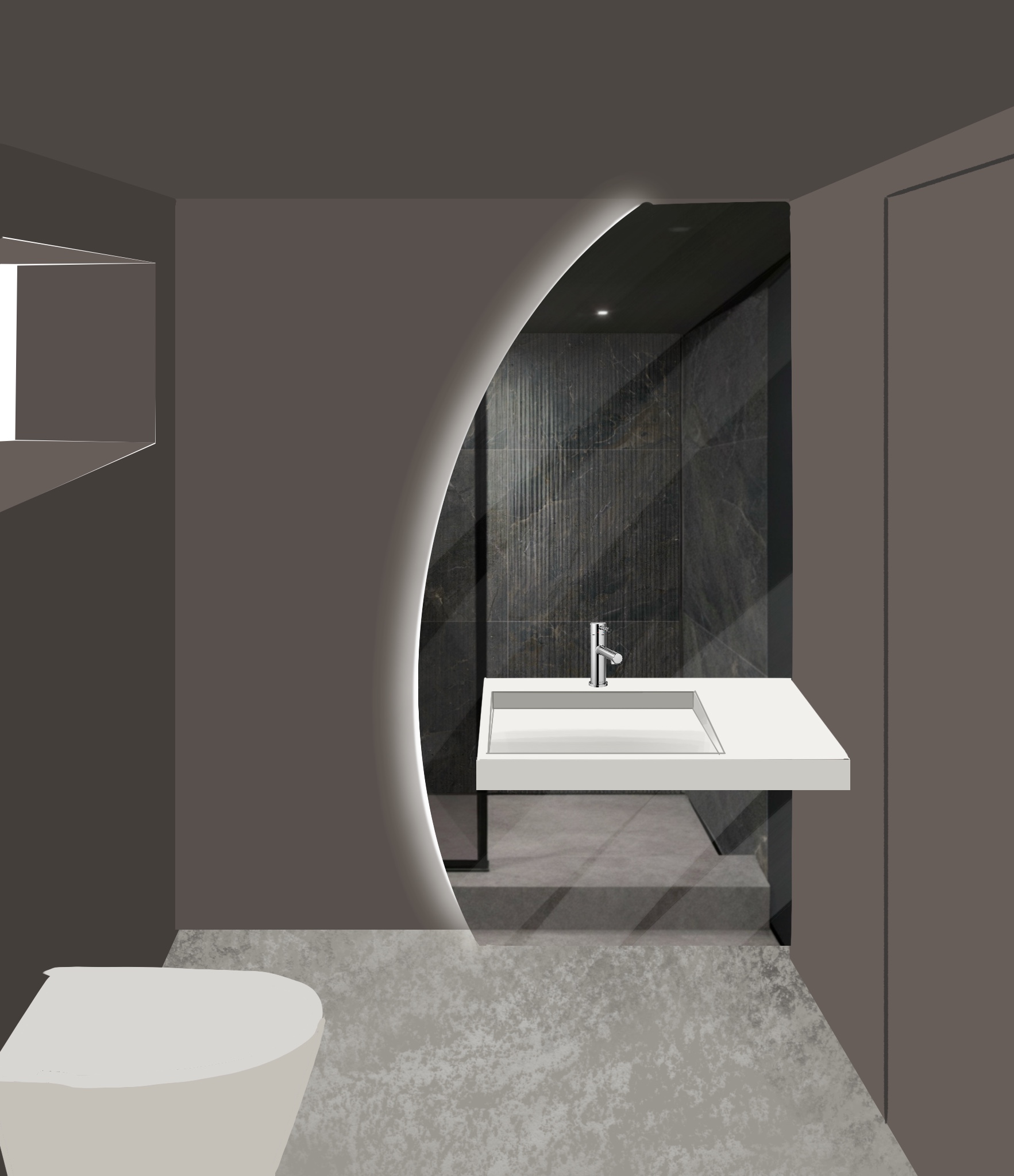 wall and ceiling colour benjamin moore af 655 curved mirror backlit no actuator plate above toilet keep finishes in mirror