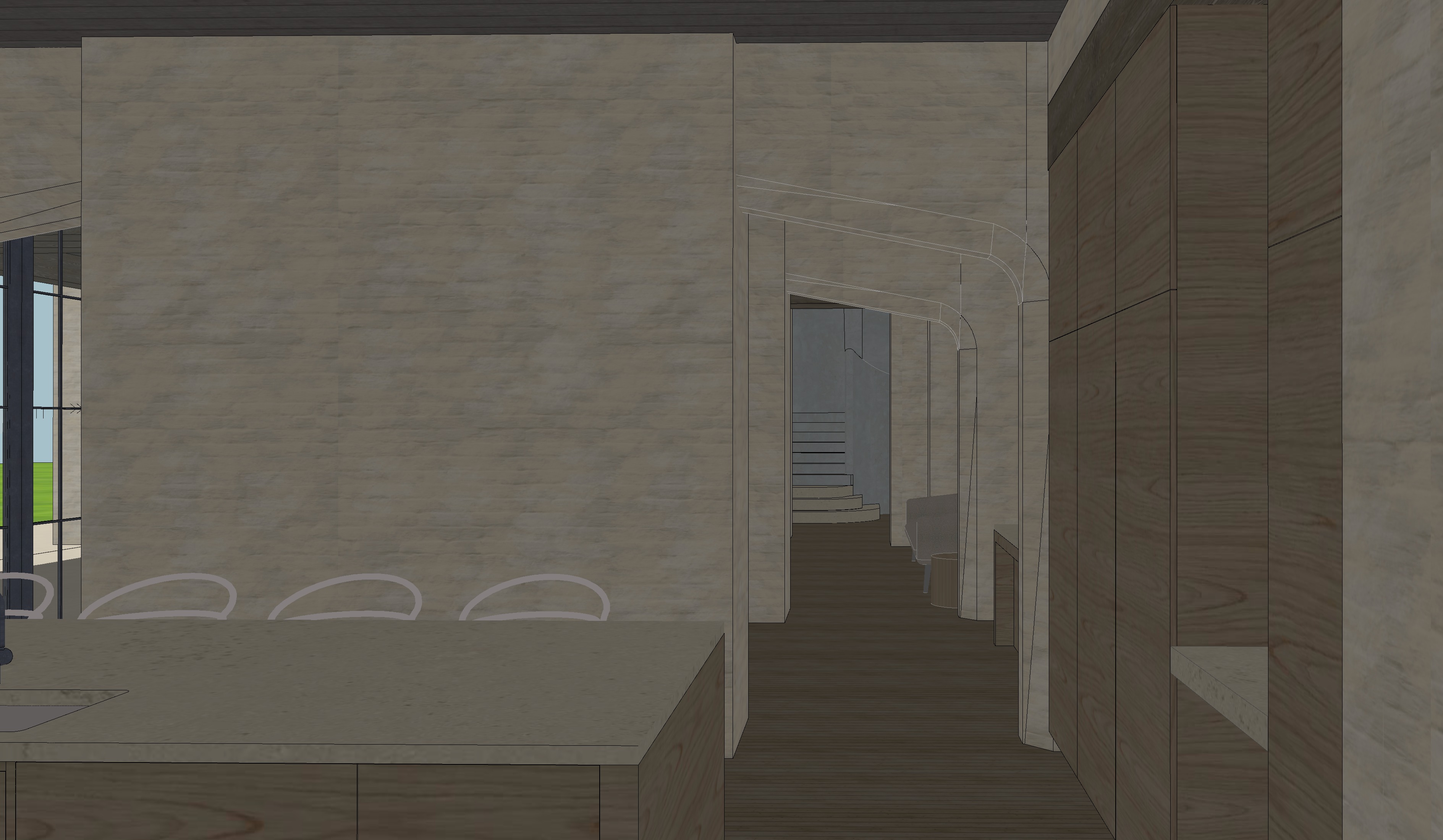 tan limewashed brick white oak flooring white oak ceiling steel accents