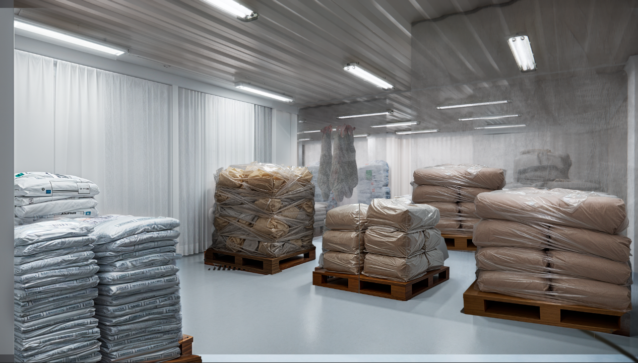 put a floor protection plastic curtains in ceiling