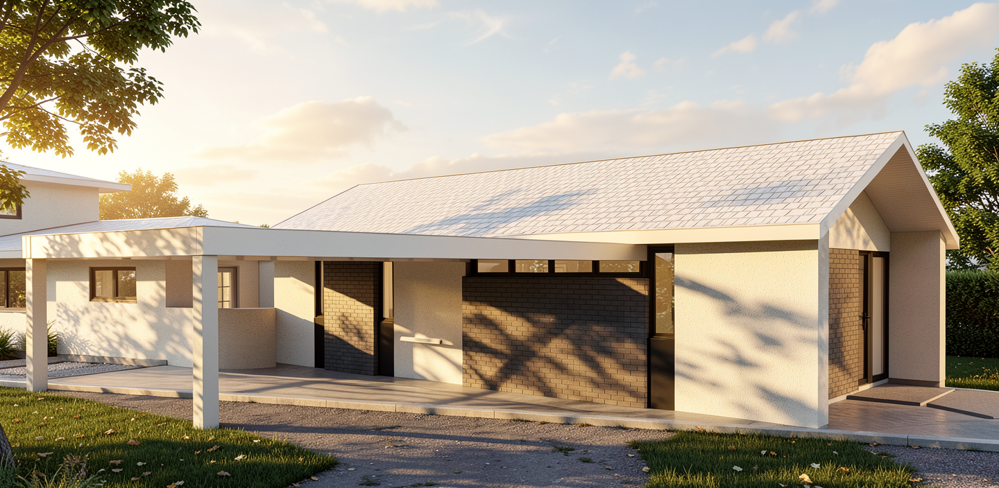 can you create a modern rendering of this kitchen island the stone should be a creamy crystal white with subtle veining the front and sides of the island should also be the same stone