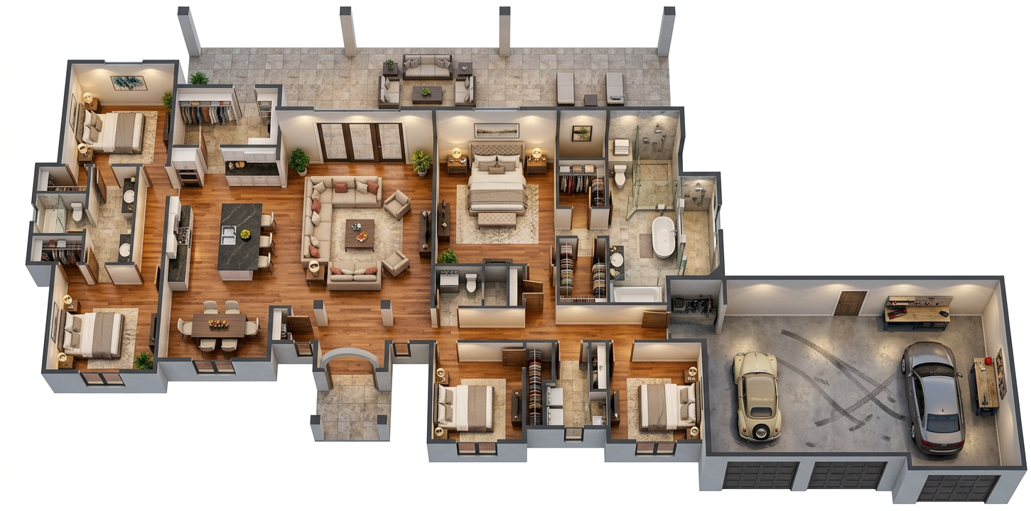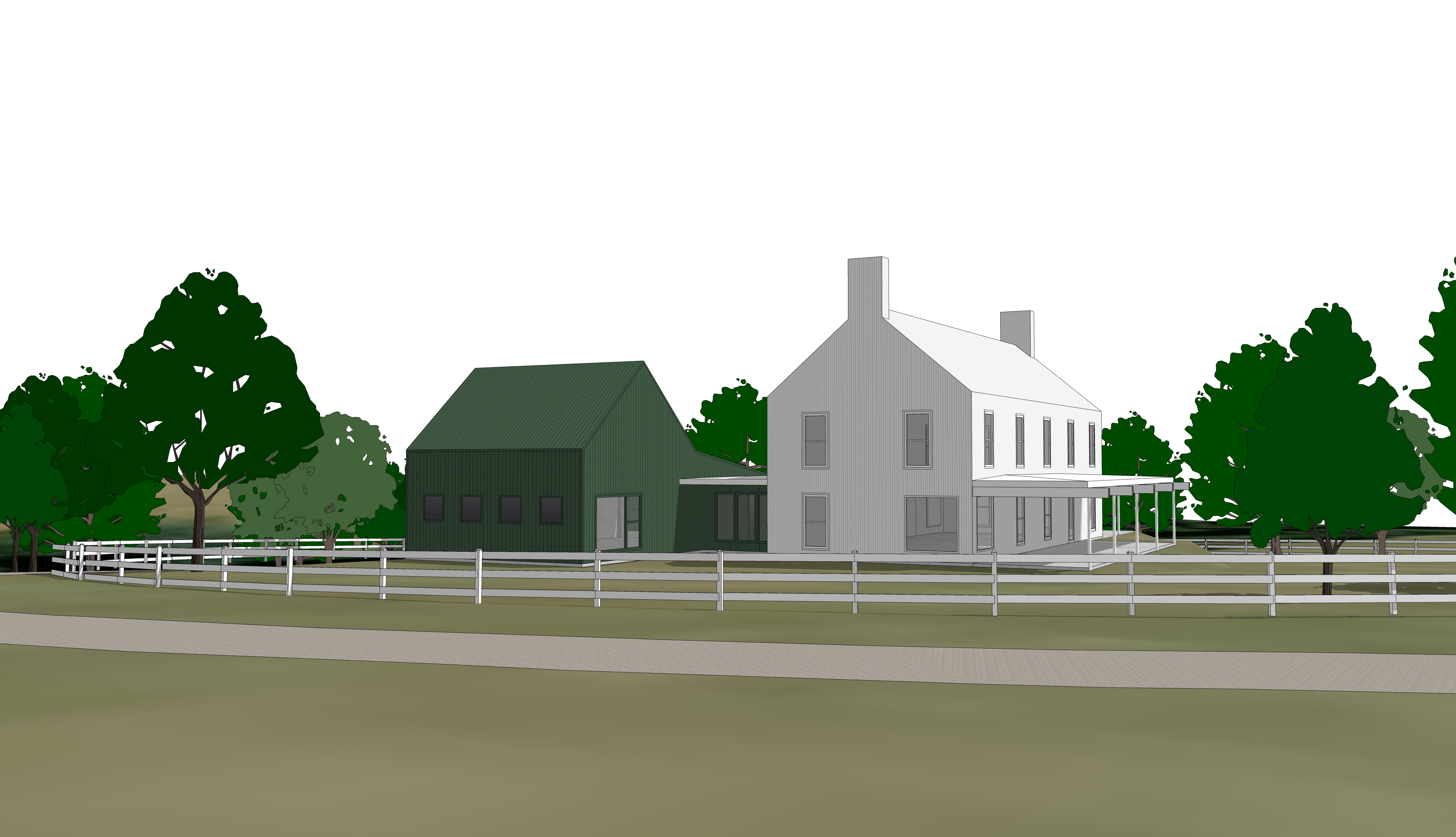 make this photorealistic the white and green materials are vertical corrugated metal siding