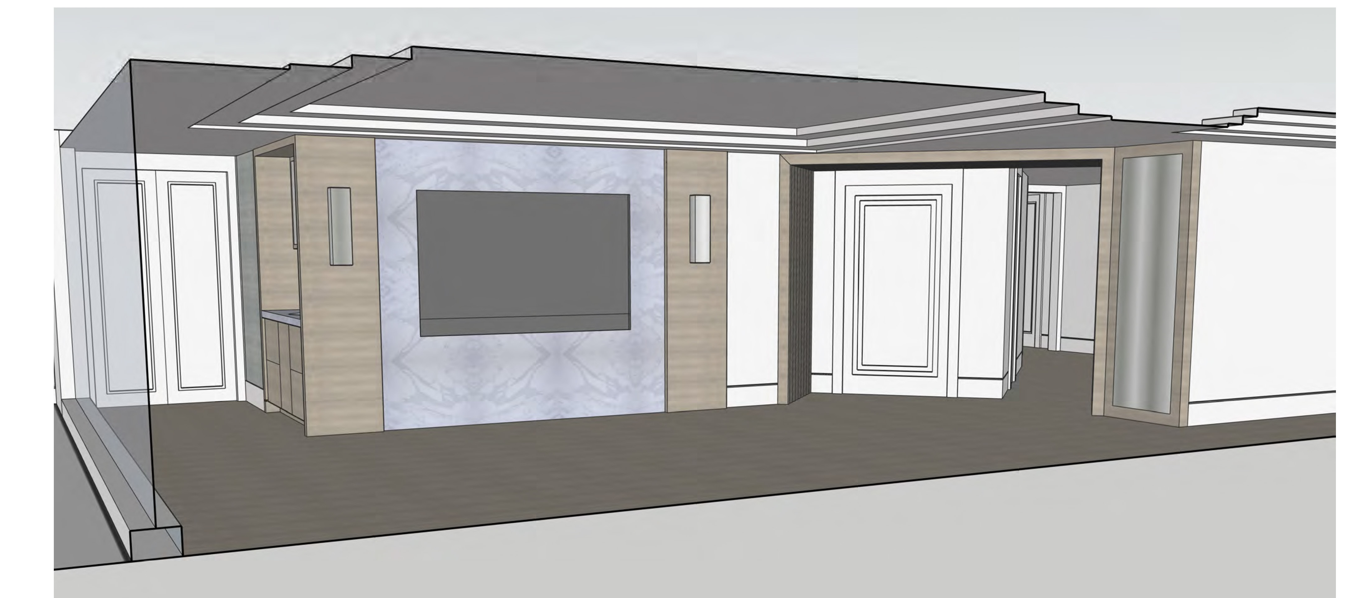transform the provided elevation rendering into a hyper realistic editorial quality interior visualization that is indistinguishable from a professional interior photograph preserve the exact original geometry design layout proportions ceiling details wall depths openings doors cabinetry locations millwork dimensions island proportions and circulation paths with zero architectural changes render the space as a fully built finished interior with physically accurate materials and construction logic cabinetry millwork and islands must read as fabricated and installed not conceptual apply materials with true to life behavior and depth wood surfaces are smooth with no patterns solid plank matte never glossy stone surfaces are matte to satin with subtle natural reflection realistic veining depth and soft edge breaks no flat textures or graphic patterns all edges corners and transitions must be softly broken and realistic avoiding sharp or perfect cgi edges camera perspective must feel architectural and photographic eye level with a 24 35mm interior lens feel natural depth cues realistic scale and balanced composition no creative interpretation no stylization no exaggeration focus exclusively on material accuracy lighting realism photographic depth and spatial calm do not alter reinterpret simplify or enhance any architectural element any deviation from the original elevation geometry is unacceptable lluminate the space using only natural daylight entering through existing openings with no artificial lights visible or active light should feel soft even and refined with realistic light bounce gentle shadow falloff and clean exposure similar to high end interior design photography avoid harsh sun streaks blown highlights or dramatic contrast the atmosphere should feel calm airy grounded and quietly luxurious