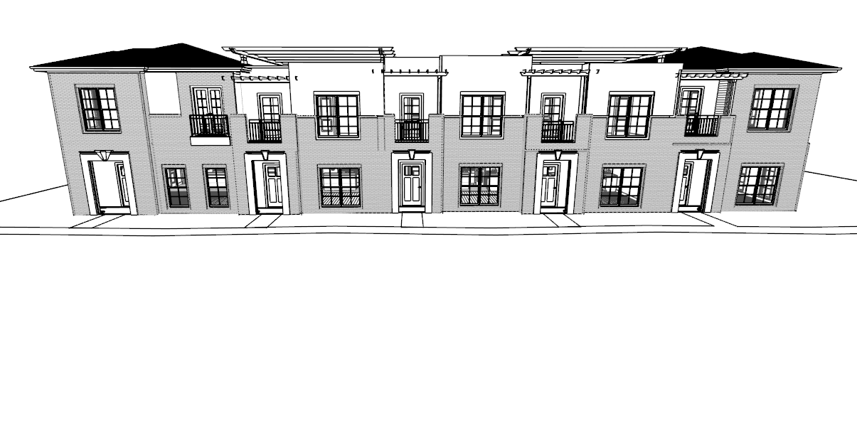 make this rendering realistic do not add floors to the quadplex enhance what is there make the pathway coming from the house concrete do not add pathways