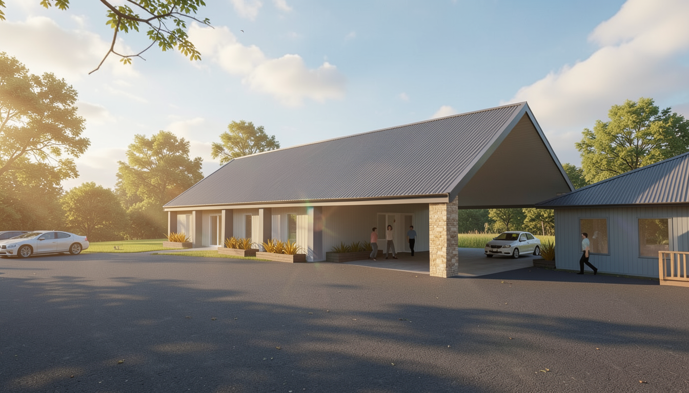 create photo realistic perspective of current home utilizing the existing materials as indicated do not change any materials the stone should be a light cream color traditional red brick with black shingle roof with white windows and white fascia the siding on the dormers should be beige color render on a sunny day with lush vegetation and a suburban setting with reflections in the windows