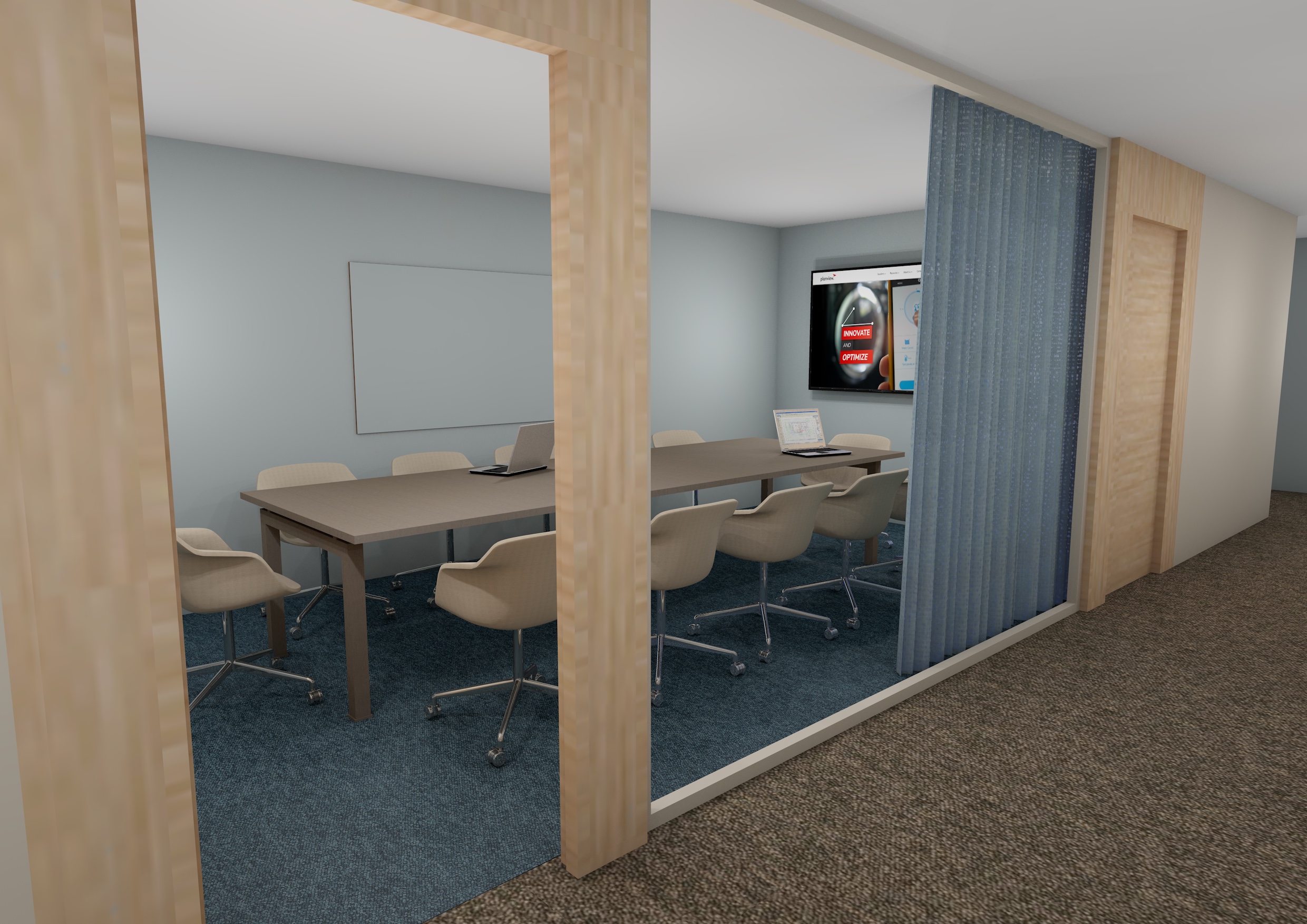 make it more realistic and not too dark but slightly warmer no blue notes in the lights the table is dark staind d brown cutains translucent blue and not so glassy