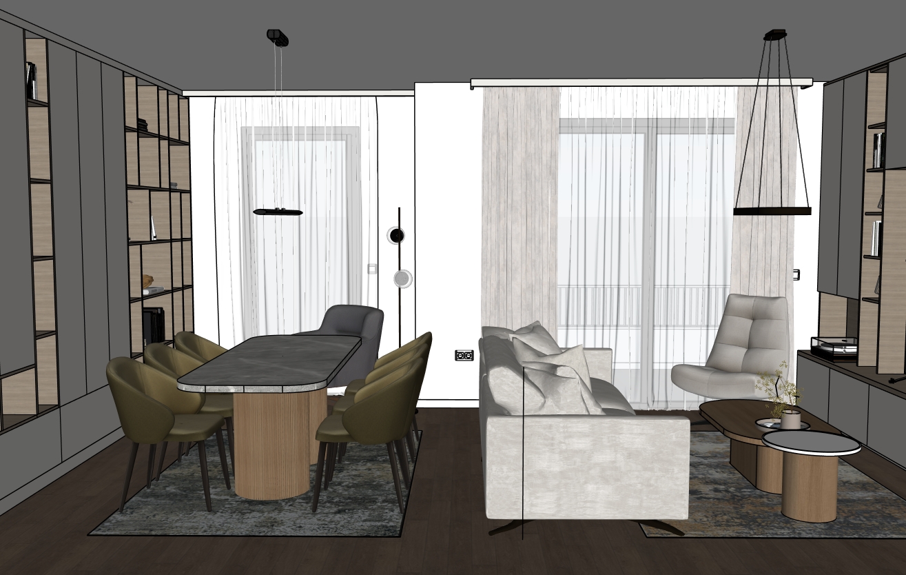 keep all colors textures and shapes don t change anything make photo realistic with natural light front of left and right shelves are light beige