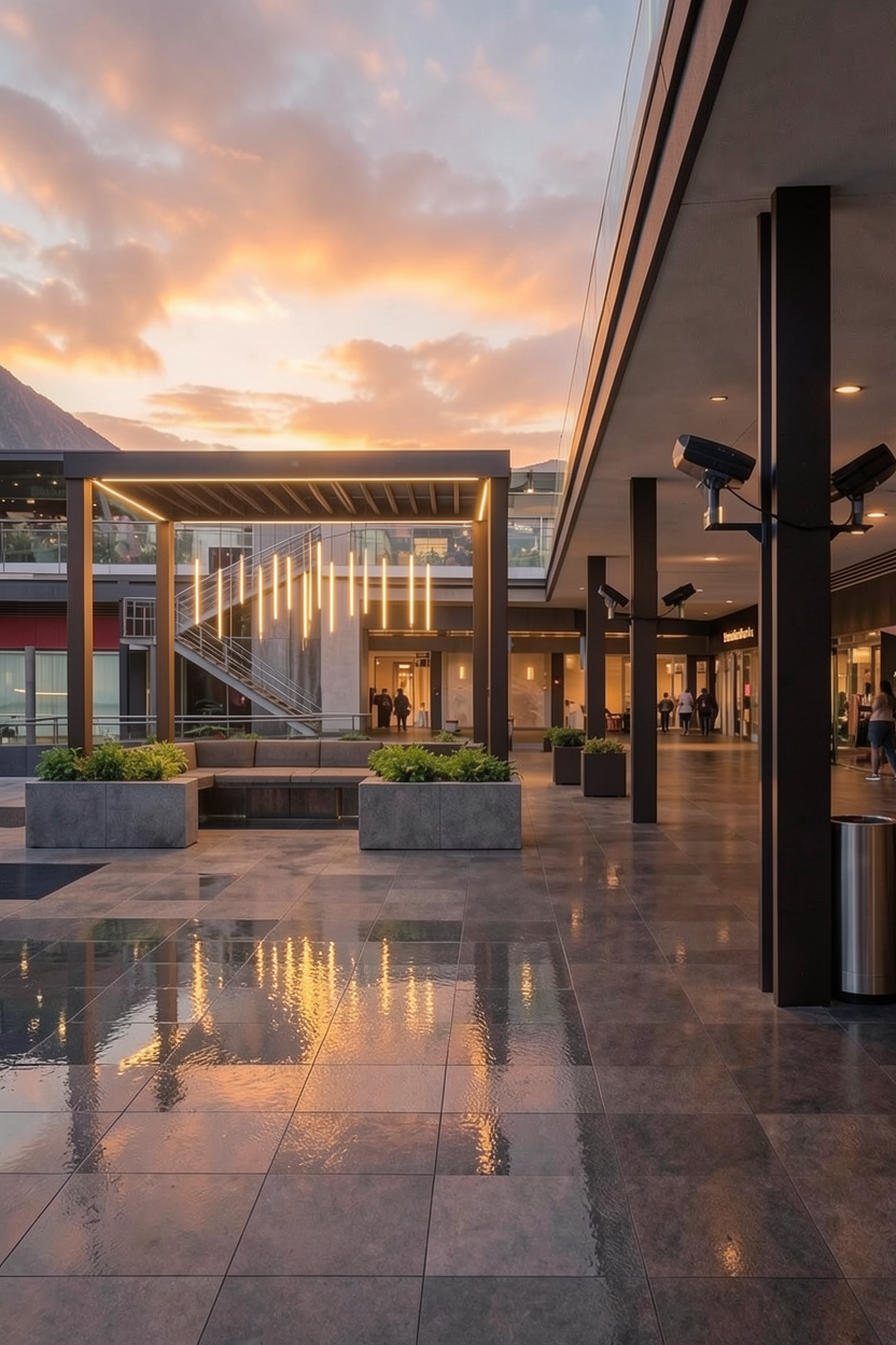 exterior shot add those lighting to the pasiilo a la derecha