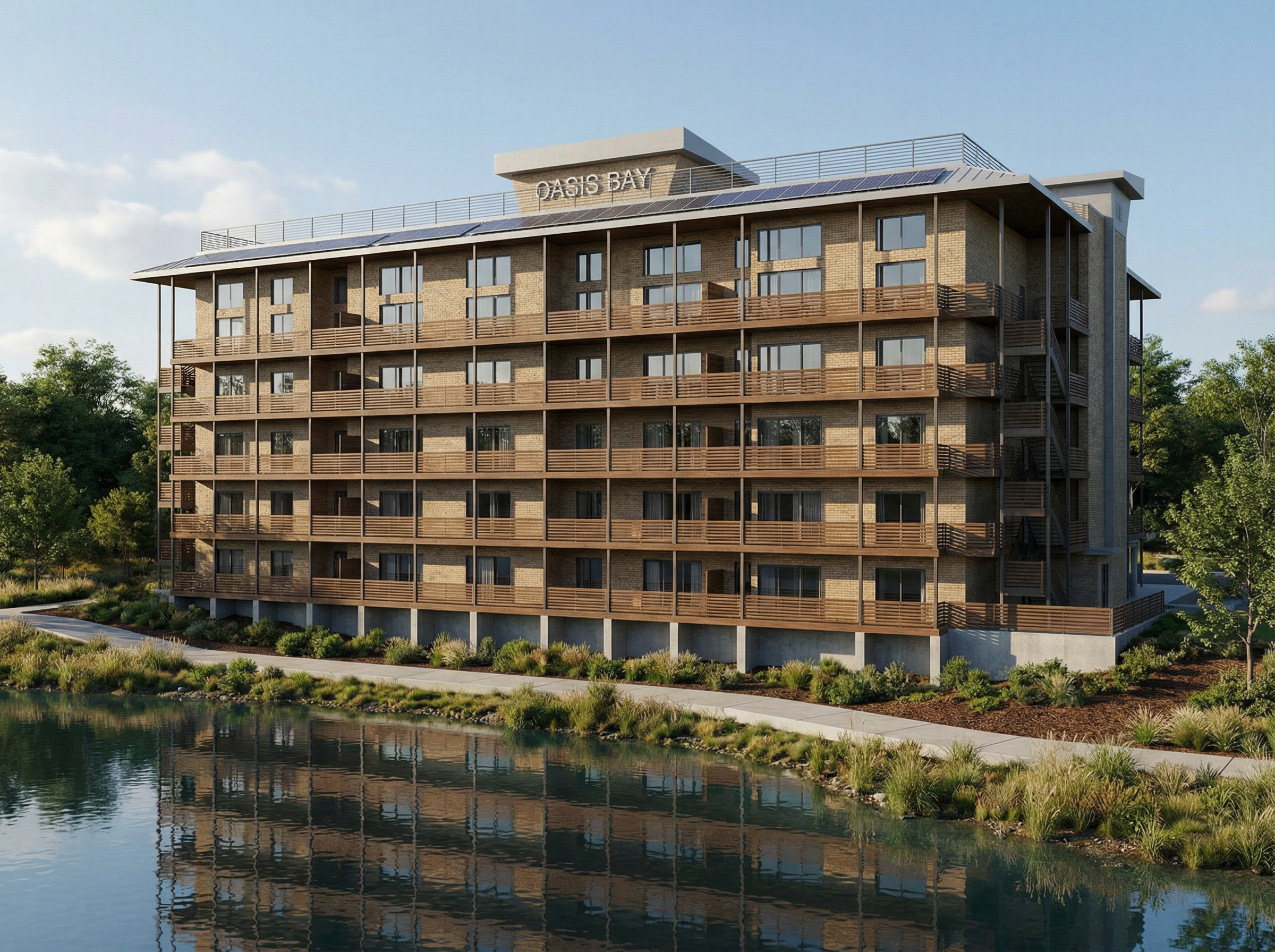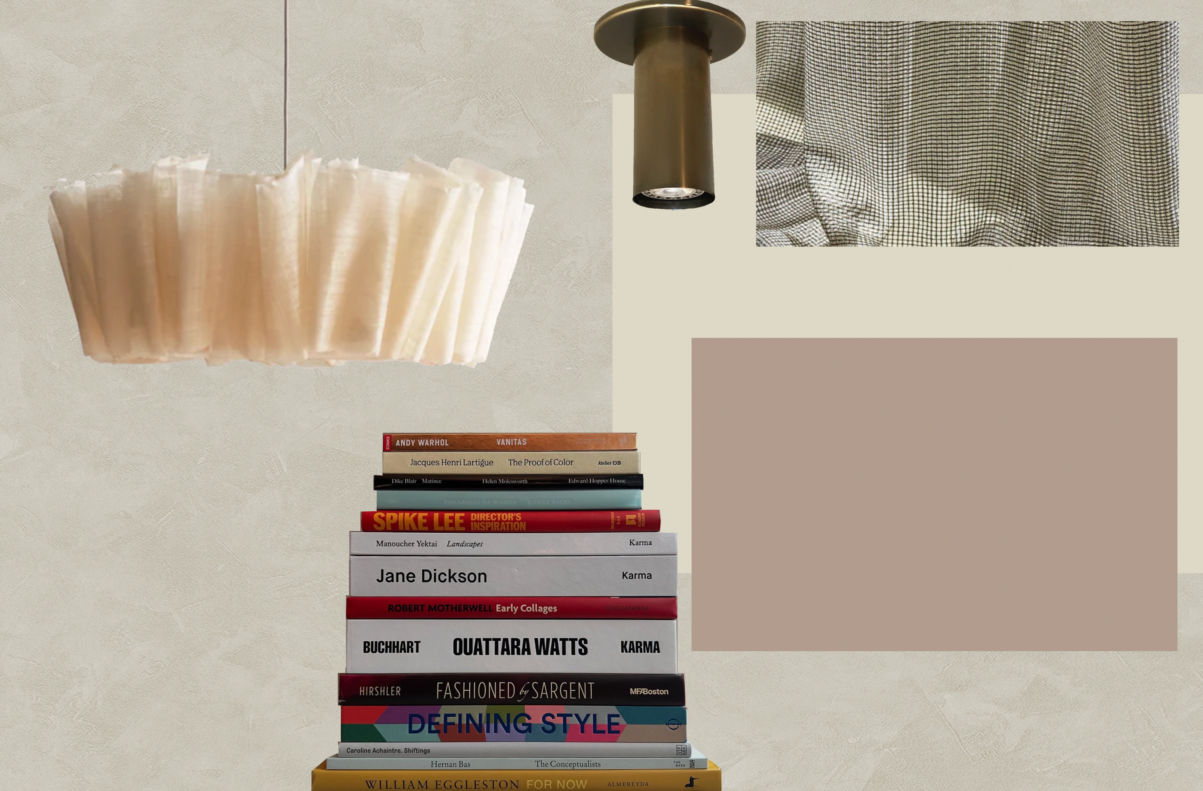 exterior shot make the rendering look like a sketch with watercolor add photos in the files as mood board around it