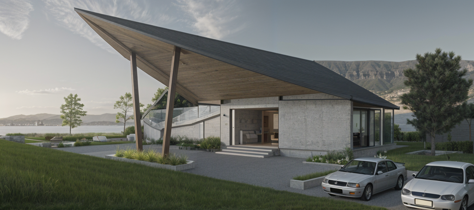 exterior shot atmostphere wamer wood structure building add tree add grass field