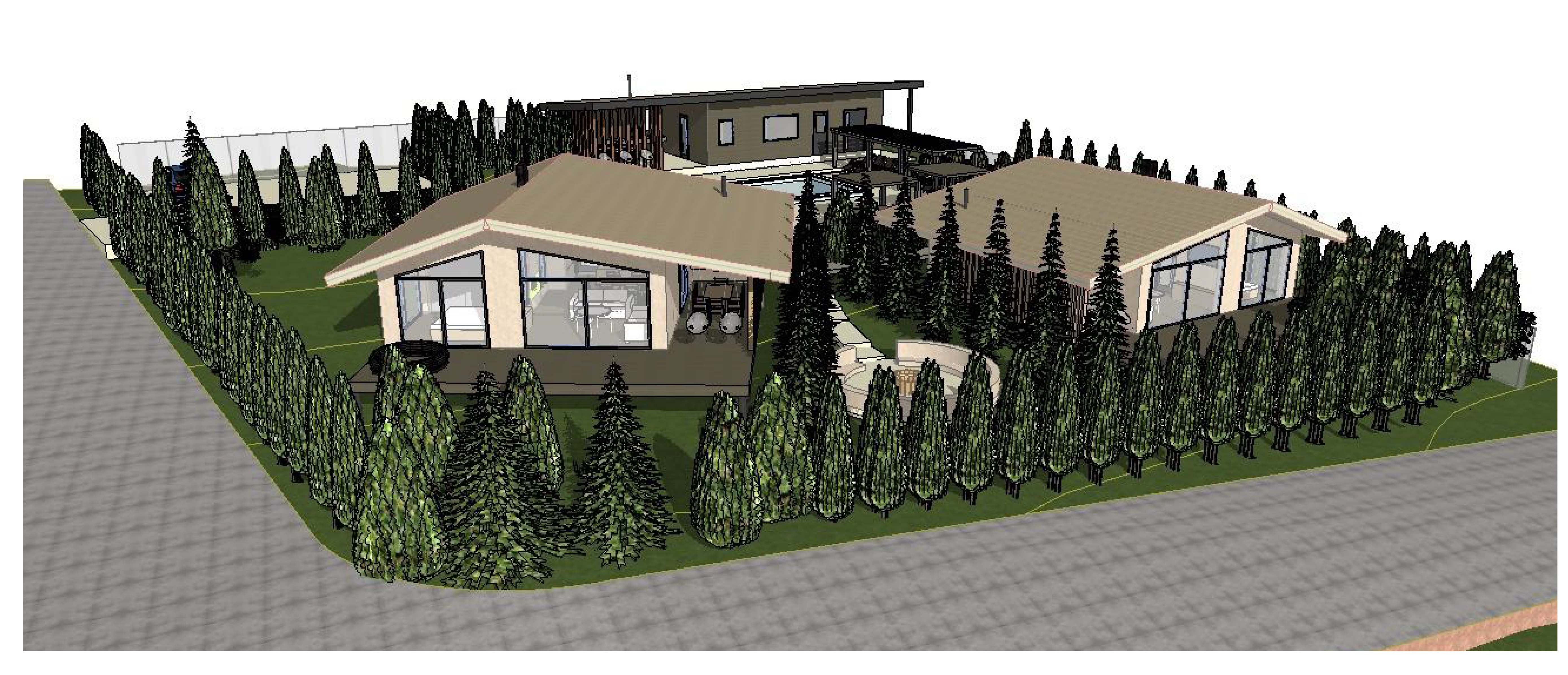 modernist exterior shot houses in a forest in mont tremblant quebec sunny morning close to noon black metal roof black windows black doors wood accent and dark wooden finishes architecture