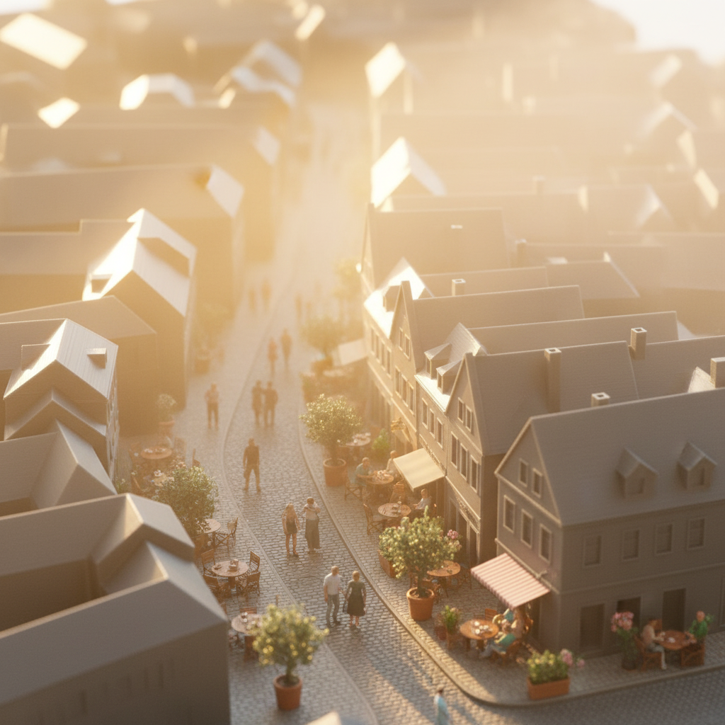 bild bleibt 100 unver ndert abstrakte stadtansicht der historischen altstadt der lutherstadt wittenberg aus leicht erh htem blickwinkel stra enszene authentisch und lebendig keine bertriebenen menschenmassen leicht dezentes italienisches flair in der atmosph re z b warme farben entspannte stimmung stra encaf s einladend leichter morgennebel zieht sanft von rechts nach links die sonne bricht durch es ist bereits warm genug um drau en in den caf s zu sitzen absolut keine nderungen an den geb uden keine k nstlerischen anpassungen keine perspektivverschiebung keine farbkorrekturen keine fenster tageszeit morgen goldene stunde weiches sonnenlicht stimmiger schattenwurf fokus auf abstrakte st dtische integration nat rliche perspektive alle geb ude und architektonischen elemente bleiben 100 unver ndert