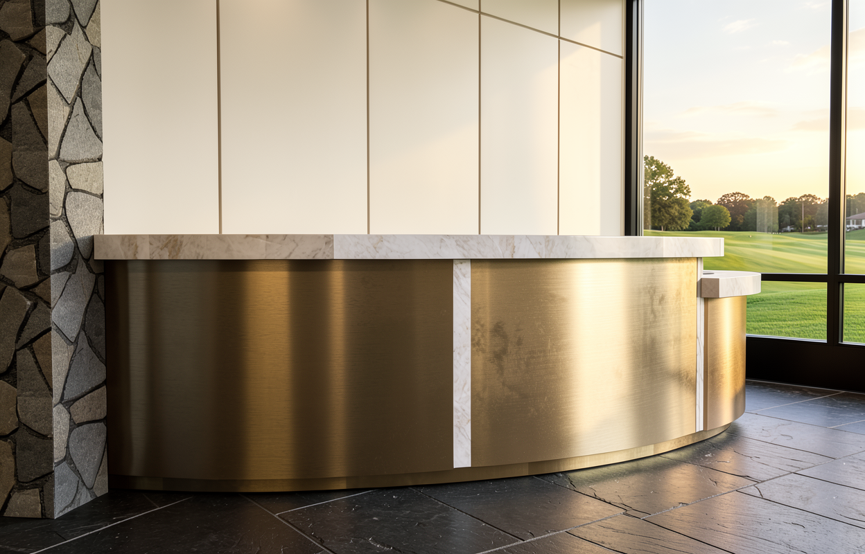 mach die spots ober den pflanzen realistischer so dass die pflazen sch n angestrahlt werden f ge auf die wand unter den spots eine tafel f r firmenlogo ein und mach die materialien realistischer entferne die tafel ober dem glasportal