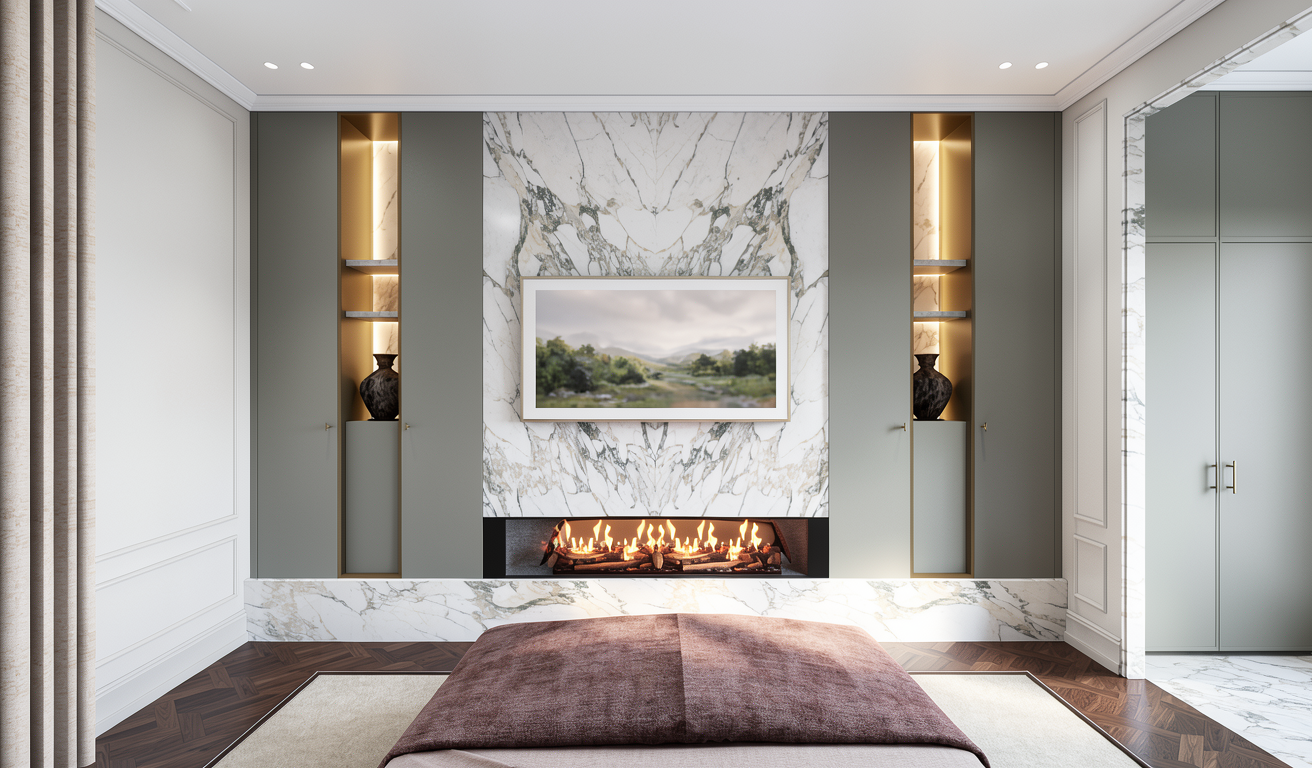 keeping the existing colour realistic render ambience lighting for blue panel ambience for white panel signboard back lit lighting counter bottom ambience lighting navy blue carpet air condition no lighting