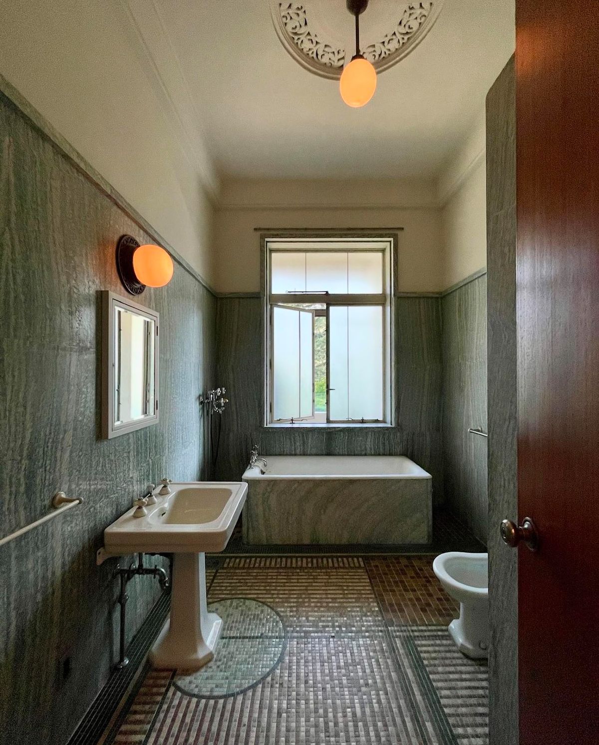 a bathroom with historical wall and floor tiles there are no windows classical design architecture