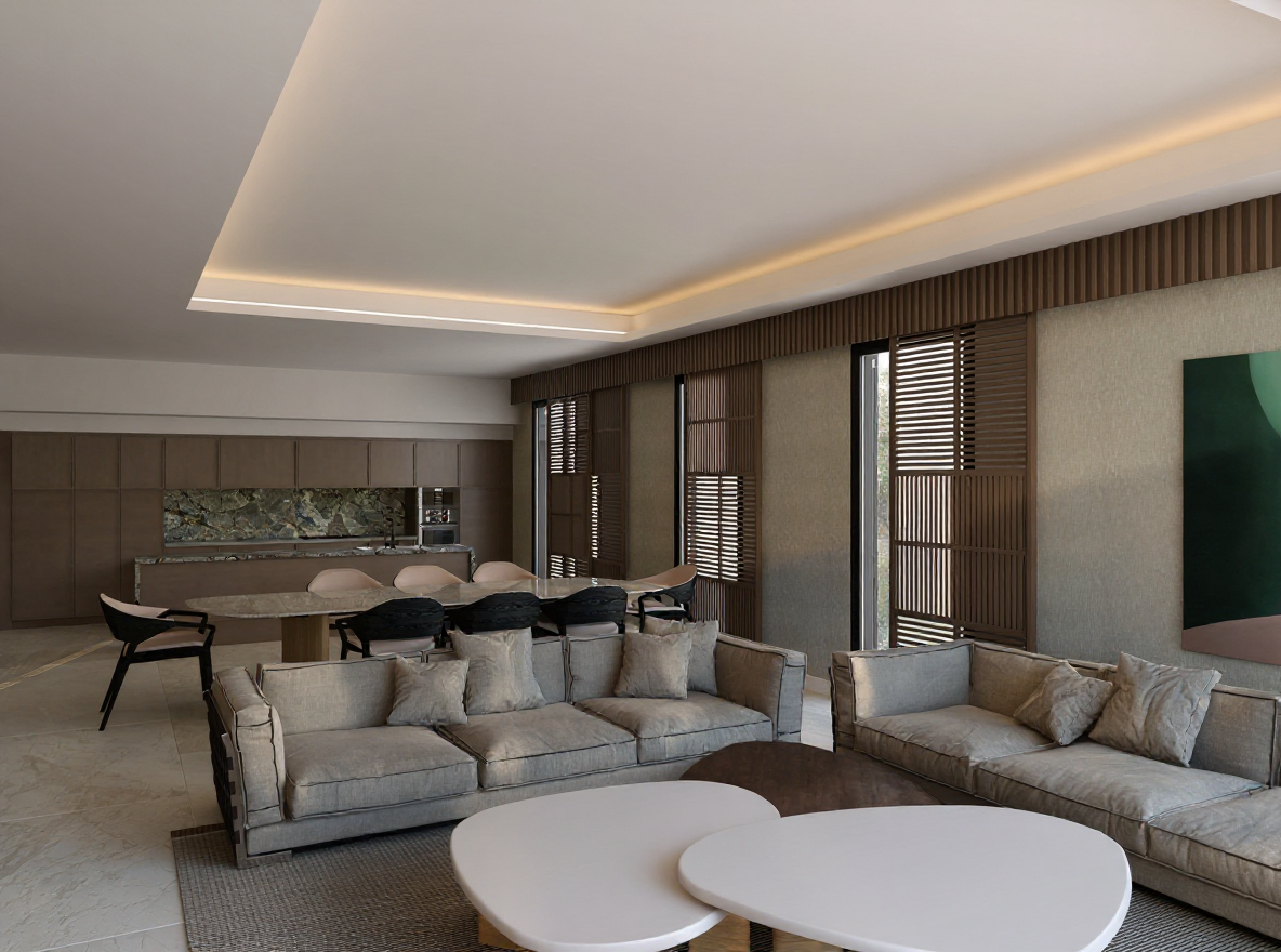 modern flat roof style with thickened metal wrapped fascia soffit standing seam metal windows hallmark of the house glass is major feature shou sugi ban japanese light grey siding