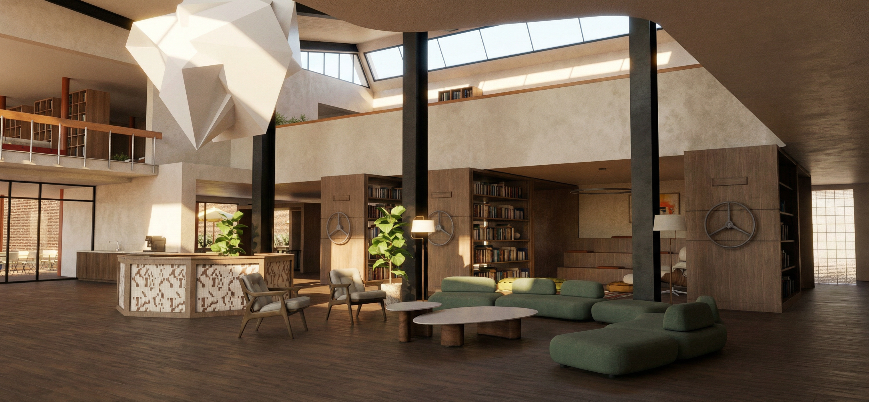 keep design make light and materials realistic and people in chairs having coffee