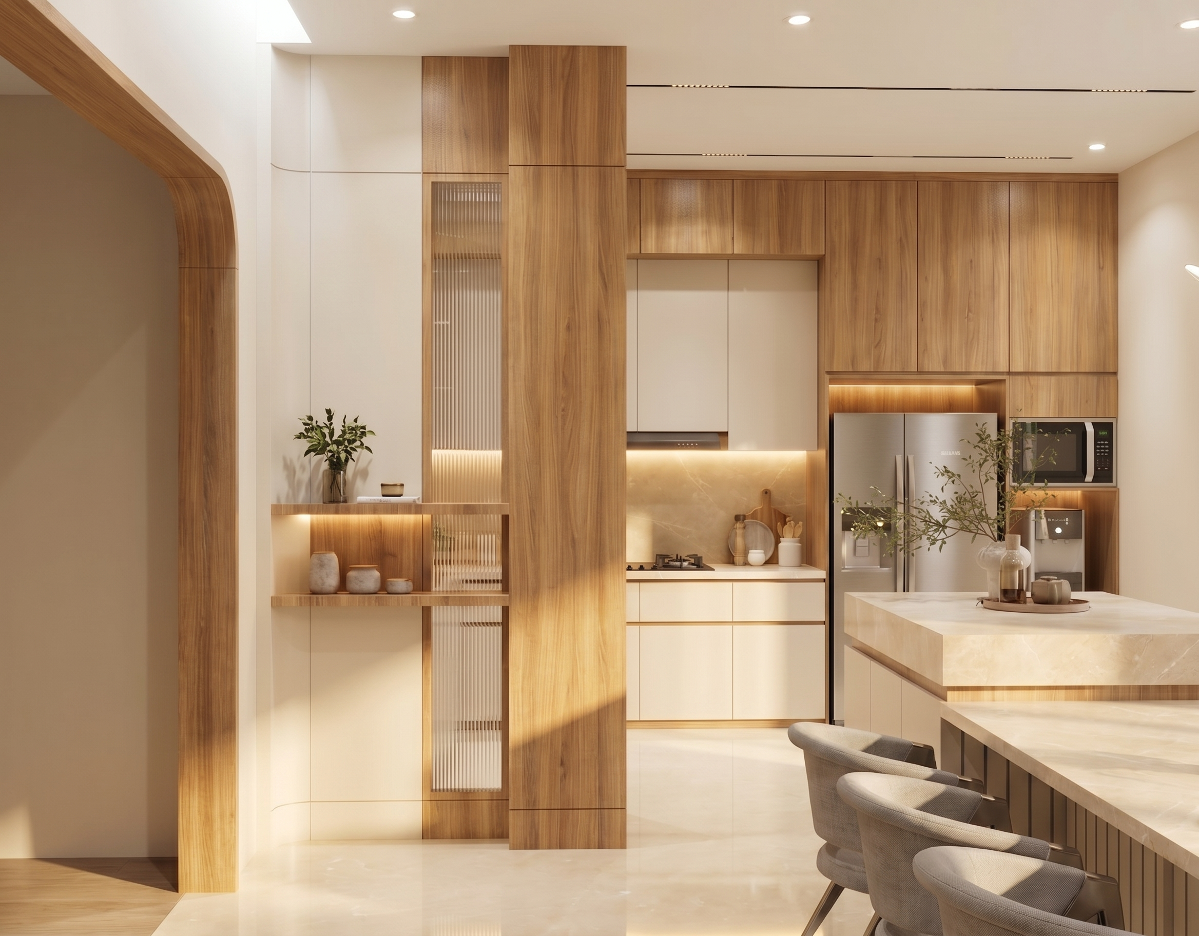 convert this floor plan into a realistic isometric 3d view of a full house show the space from an elevated angle with furniture walls and details visible analyze the provided floor plan walls are shown has white all windows are started from ground level generate the provided auto cad style 2d residential floor plan into a high quality 3d isometric top down true 90 orthographic architectural photorealistic rendering floor plan keeping the exact same dimensions proportions walls doors windows and furniture placement as shown do not enlarge the terras keep window at the terras as shown place dimensions lines and text and names clearly good readable as shown do not place furniture at the terras do not change layout scale or orientation at the living room large windows to the ground at the terras kitchen setup as shown kitchen wall and kitchen island style interior modern japanese japan with a soft neutral color palette of beige cream and light wood tones parquet in living room and dining room all other rooms and between kitchen island and wall light square tiles 60 cm in rest of rooms light natura warm neutral tones beige off white soft grey minimalist furniture clean lines built in cabinetry stone or microcement surfaces matte black accents furnish the existing rooms in a modern aesthetic elegant interior light soft ambient interior lighting and soft natural daylight with subtle shadows architectural visualisation distortion no added or removed elements keep the tops of the walls cleanly cut and white to show the layout clearly use the same furniture as shows on the plan do not change the orientation of the floorplan