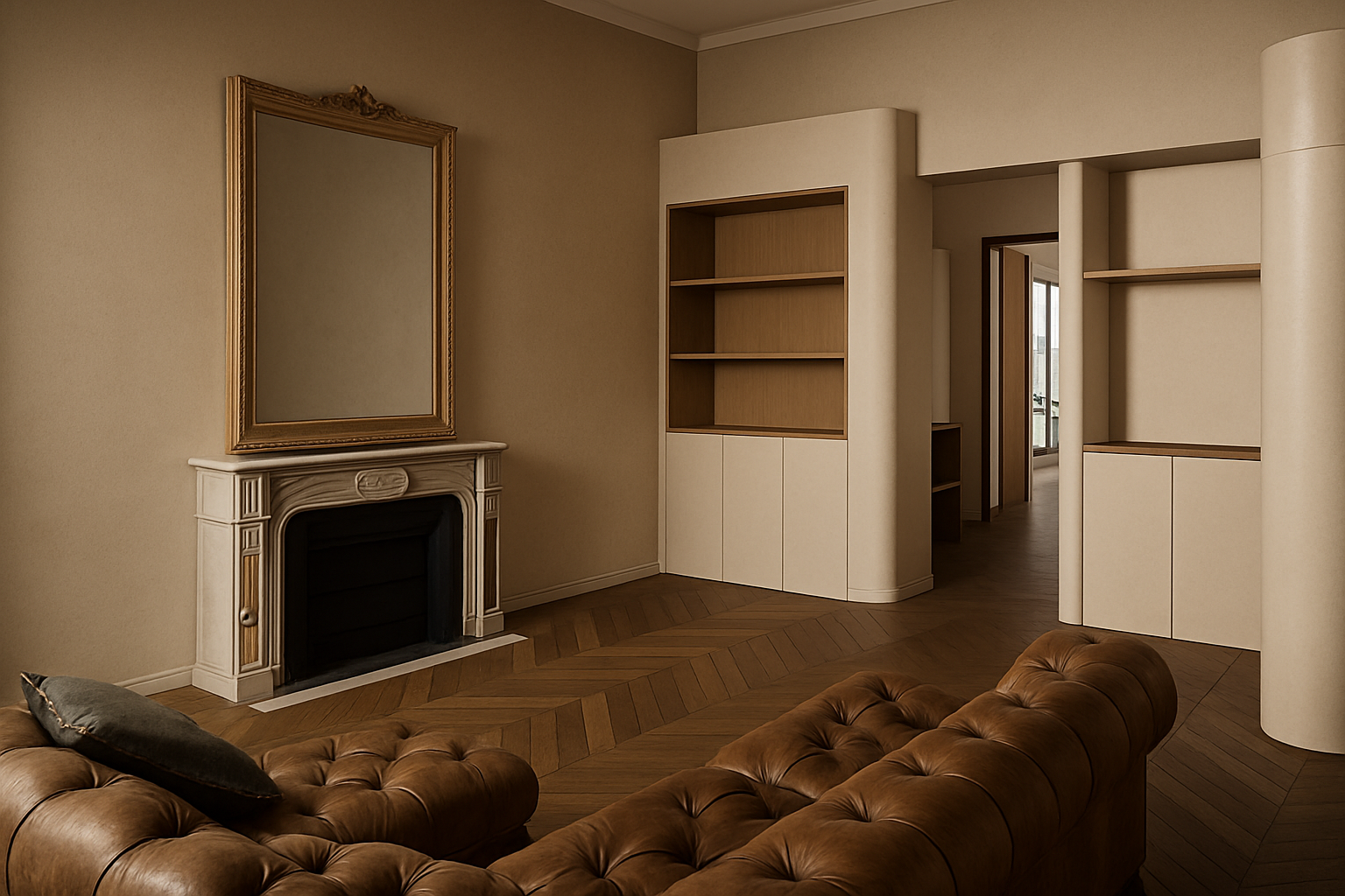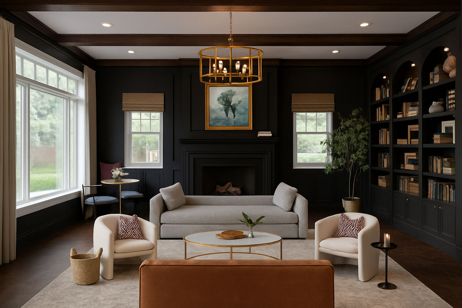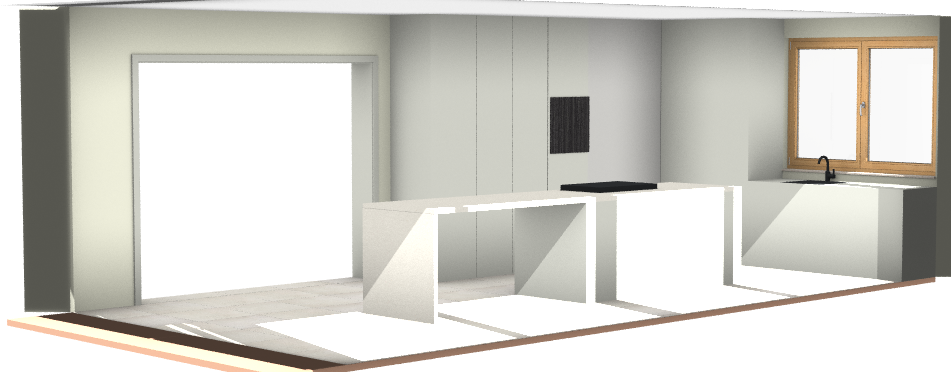creamy grey cabinets with light brown cementlook countertops and luxurious lighting