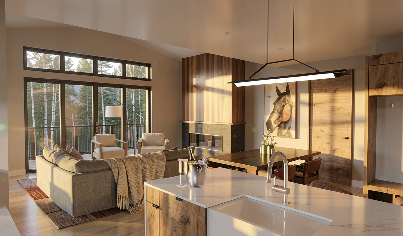 make the stainless steel kitchen faucet look more realistic and make the sectional a darker gray fabric with a neutral throw blanket