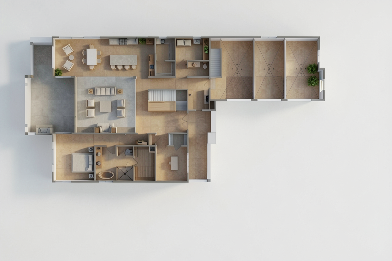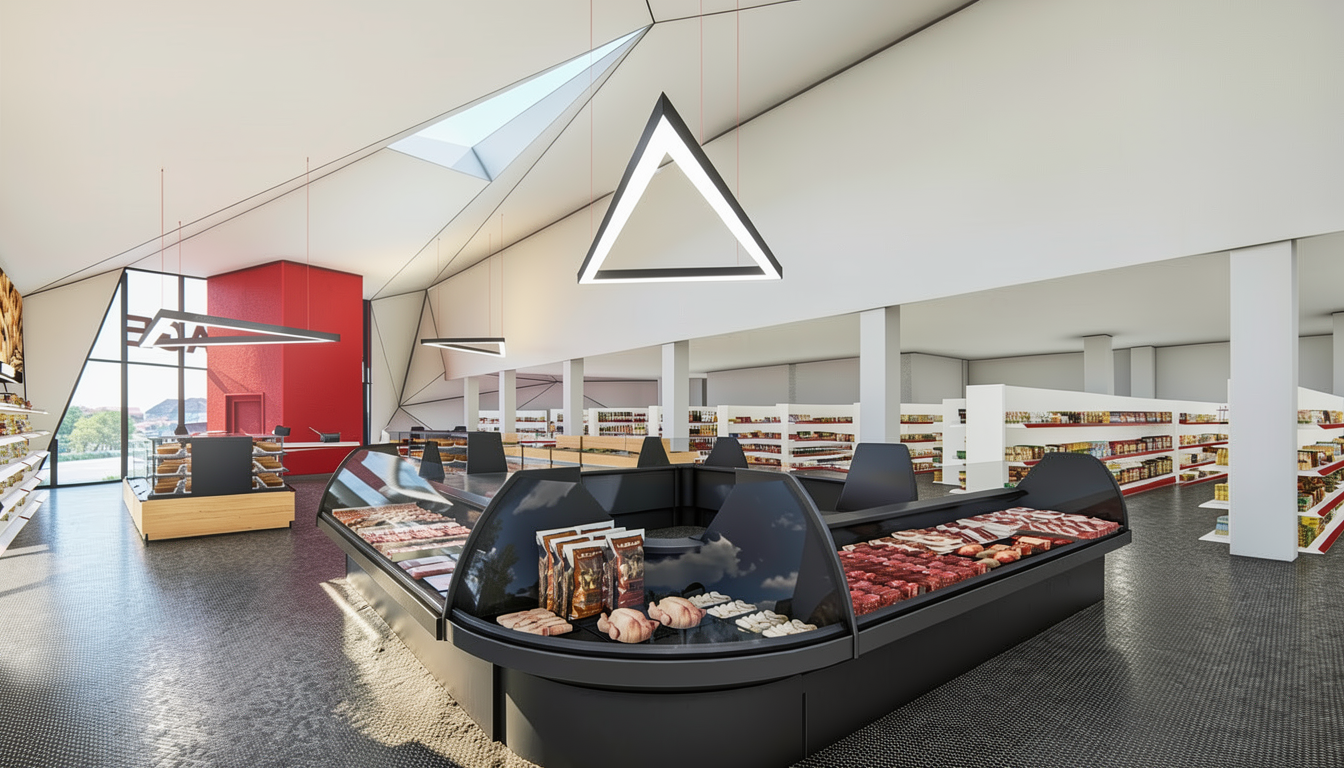 modernist exterior shot a cozy elegant restaurant interior with rich wooden tables and chairs in a warm chestnut brown the walls are a soft off white creating a bright and inviting atmosphere large windows are framed in a deep cherry red allowing natural light to stream in and illuminate the space the ceiling is a sleek dark gray adding a modern touch the tables are set with simple white ceramic bowls and glasses complemented by soft white candles for ambient lighting the flooring is a smooth light beige enhancing the warm and welcoming feel the overall atmosphere is chic and sophisticated perfect for dining and socializing architecture
