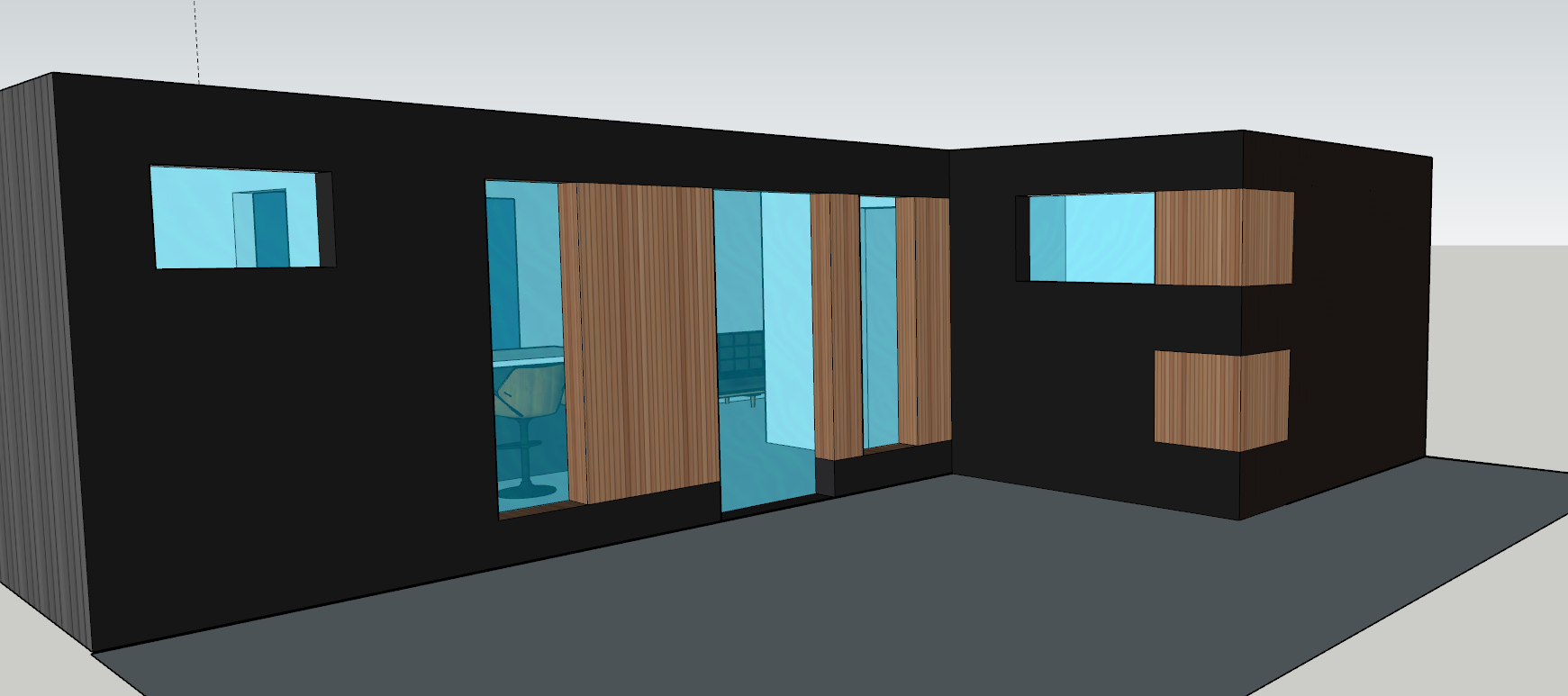 cedar wood cladding with a black plaster render windows and doors keep same layout make realistic