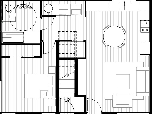 modern interior shot render a beautifully detailed interior based on the floor plan living room use warm beige and soft gray tones for the walls with plush cream colored couches and a textured patterned rug in subtle earth tones add small indoor plants for a touch of freshness dining area feature a wooden dining table in rich walnut surrounded by elegant chairs upholstered in soft ivory above hang a chic minimalist chandelier casting a gentle warm light kitchen create sleek modern countertops in white marble with subtle gray veining include cabinetry in a matte dark teal finish with chrome fixtures for a pop of shine bathroom opt for a calming spa like atmosphere with light seafoam green walls white porcelain fixtures and bamboo accessories include a large round mirror framed in brushed metal bedrooms use calming pastel colors like soft lavender or light blue for the walls with crisp white sheets and plush pillows add abstract art pieces with hints of gold and navy hallway and stairs incorporate light oak for the stairs and railings with the walls in a neutral light gray accentuate with subtle modern lighting fixtures for a cozy atmosphere the overall atmosphere should feel harmonious modern and inviting with a blend of contemporary design and warm welcoming colors architecture