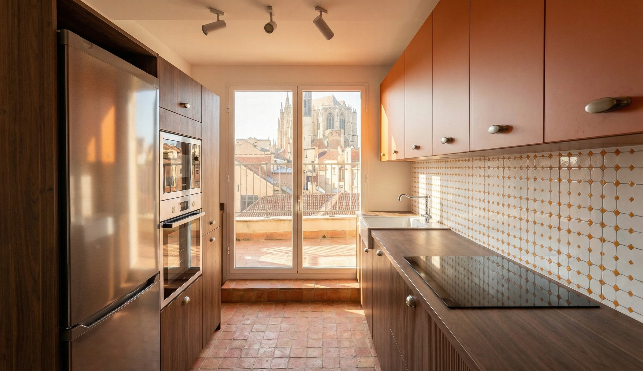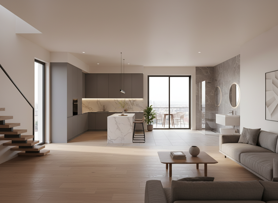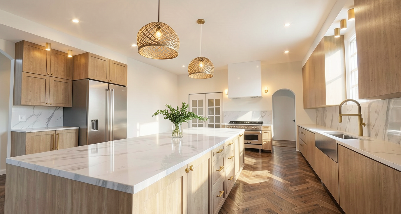 add recessed lights brighter interior shot add bar stool behind the island add stuff on counter tops