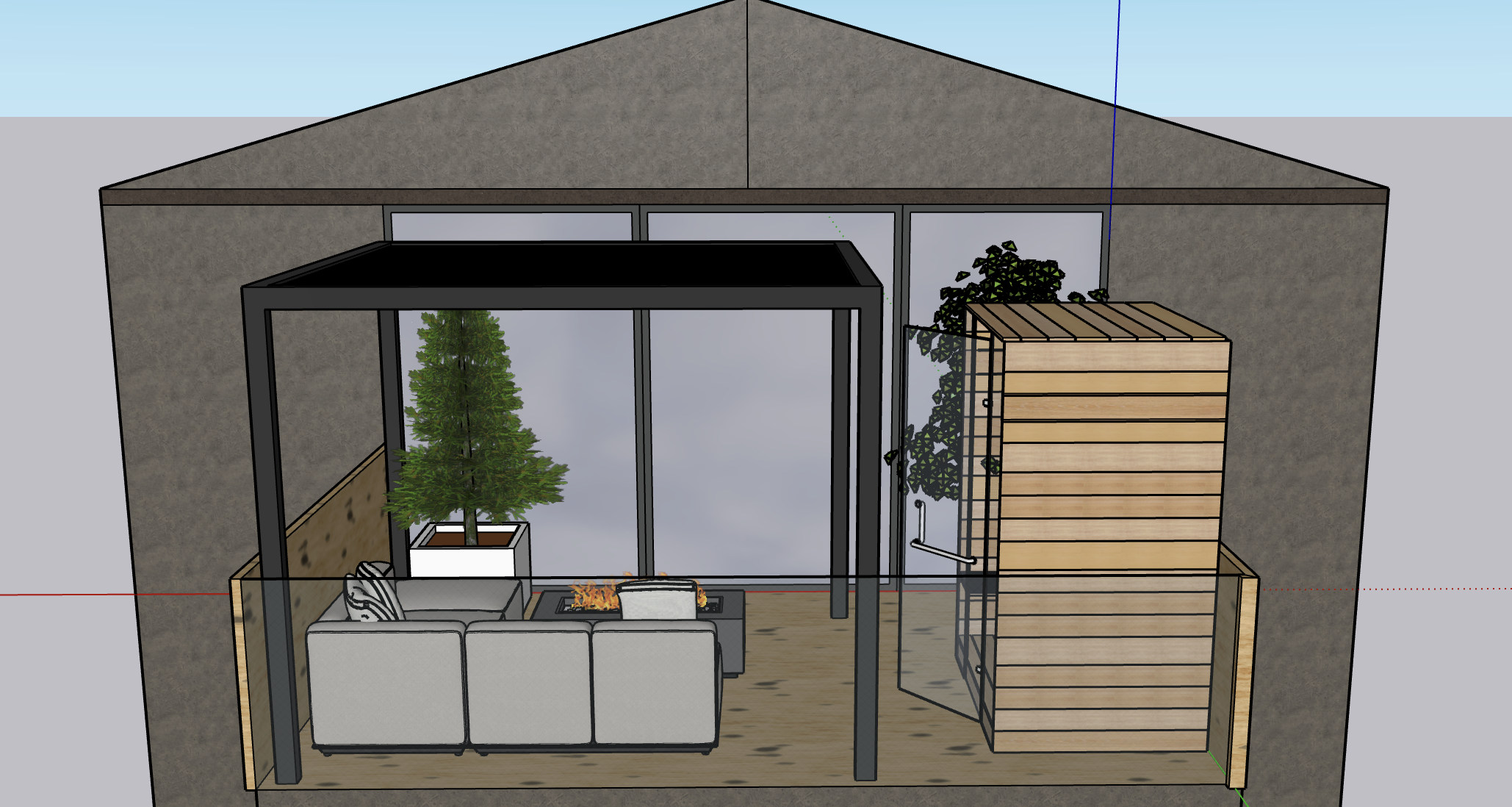 put a large tree in the left planter box
