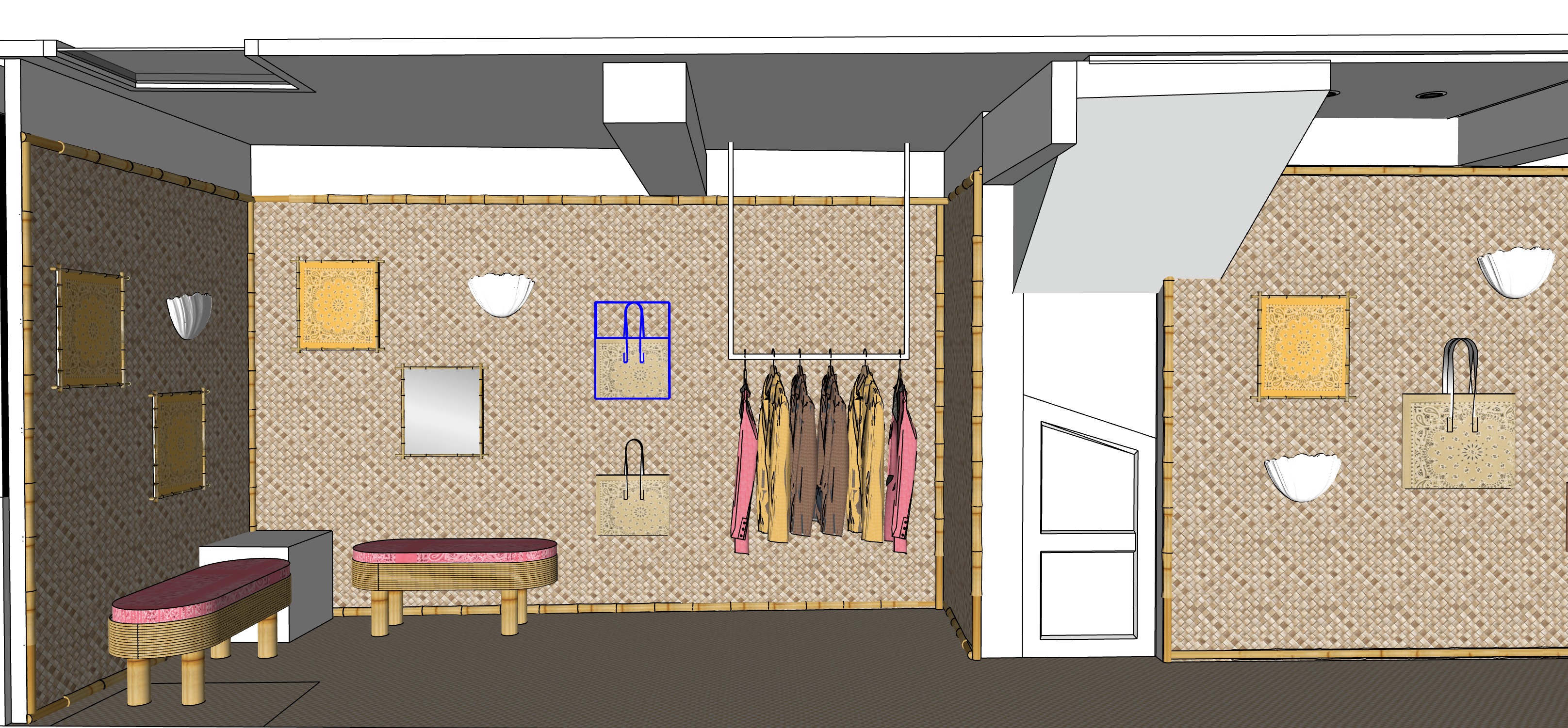 natural light shop floor sisal naturel seat in bamboo with fabric pink decor shell no light in celling the door white ceiling and beam white light warm mood