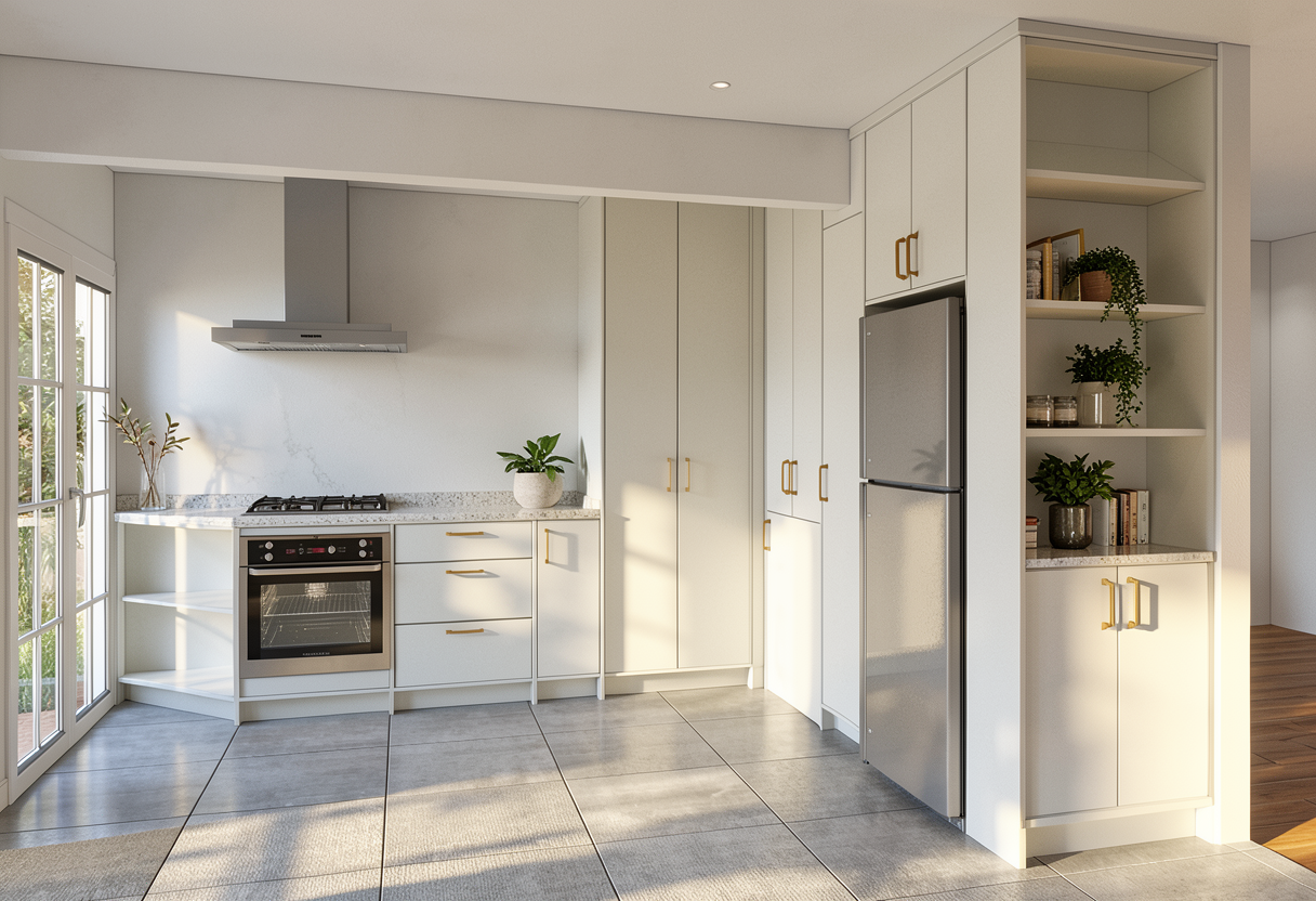 sustainable design interior shot create a serene modern architectural interior with high ceilings and large windows use soft warm light to cast gentle shadows across the room the walls and columns should be a light beige contrasted with white beams on the ceiling infuse the space with a sense of openness and tranquility adding faint touches of greenery near the windows the atmosphere should feel calm and inviting with a minimalist aesthetic and an emphasis on natural light architecture