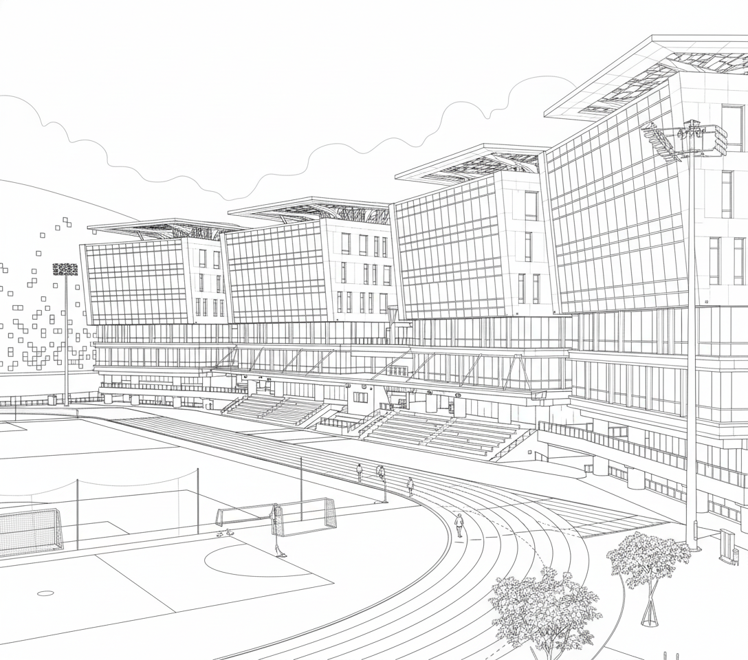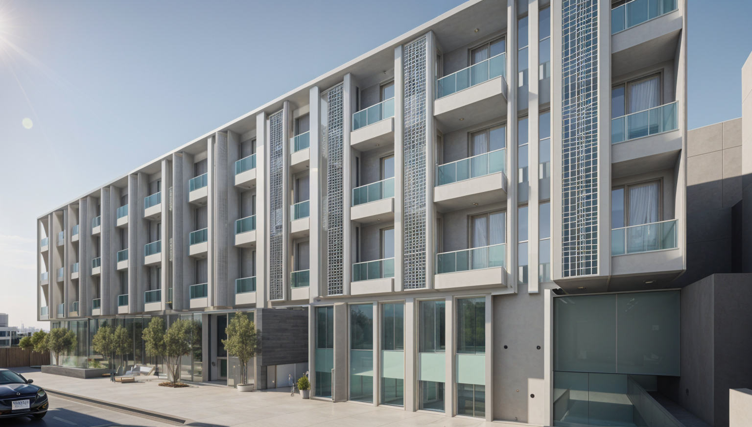art nouveau exterior shot render the uploaded image but play with the elements provided making changes to explore what different potentials for the facade architecture