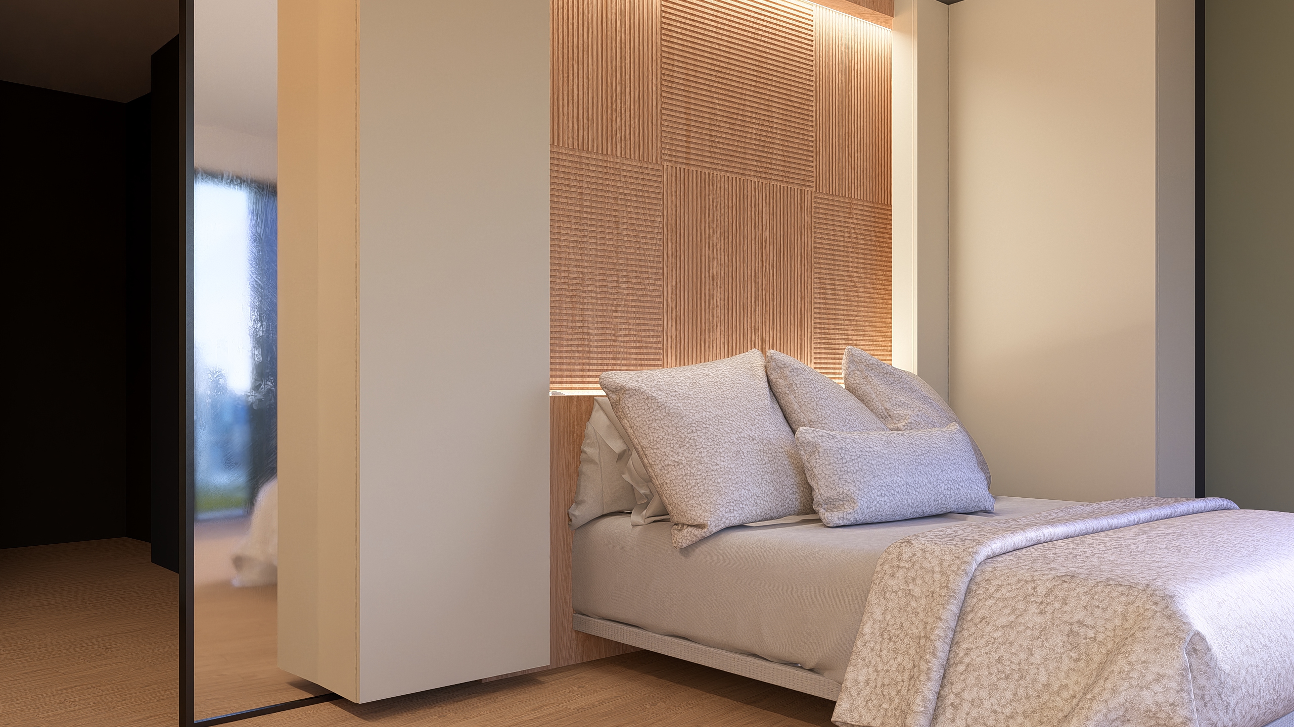 no handles frame of bed is fabric wooden wall stays at it is