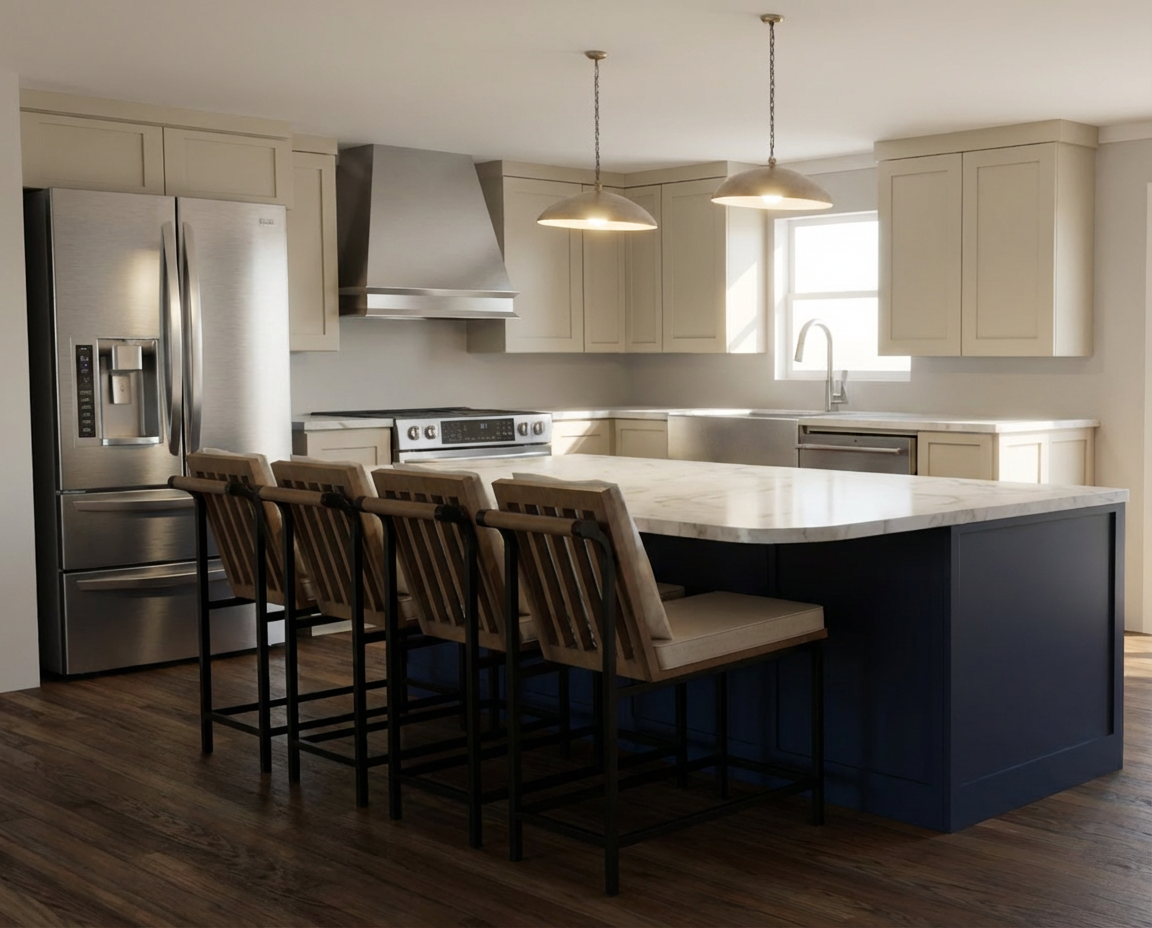 light beige cabinet with painted light beige hood