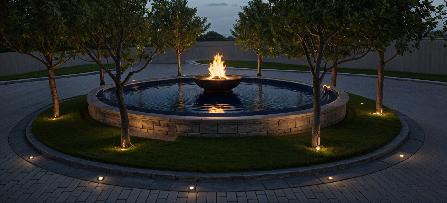 add lights under each tree and make fire larger