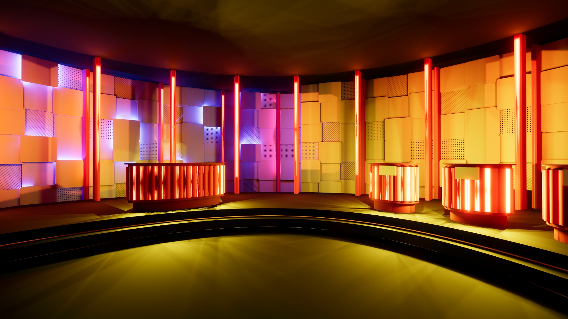 repeat blue led lights on the right side wall give it a black shiny floor that reflects the light