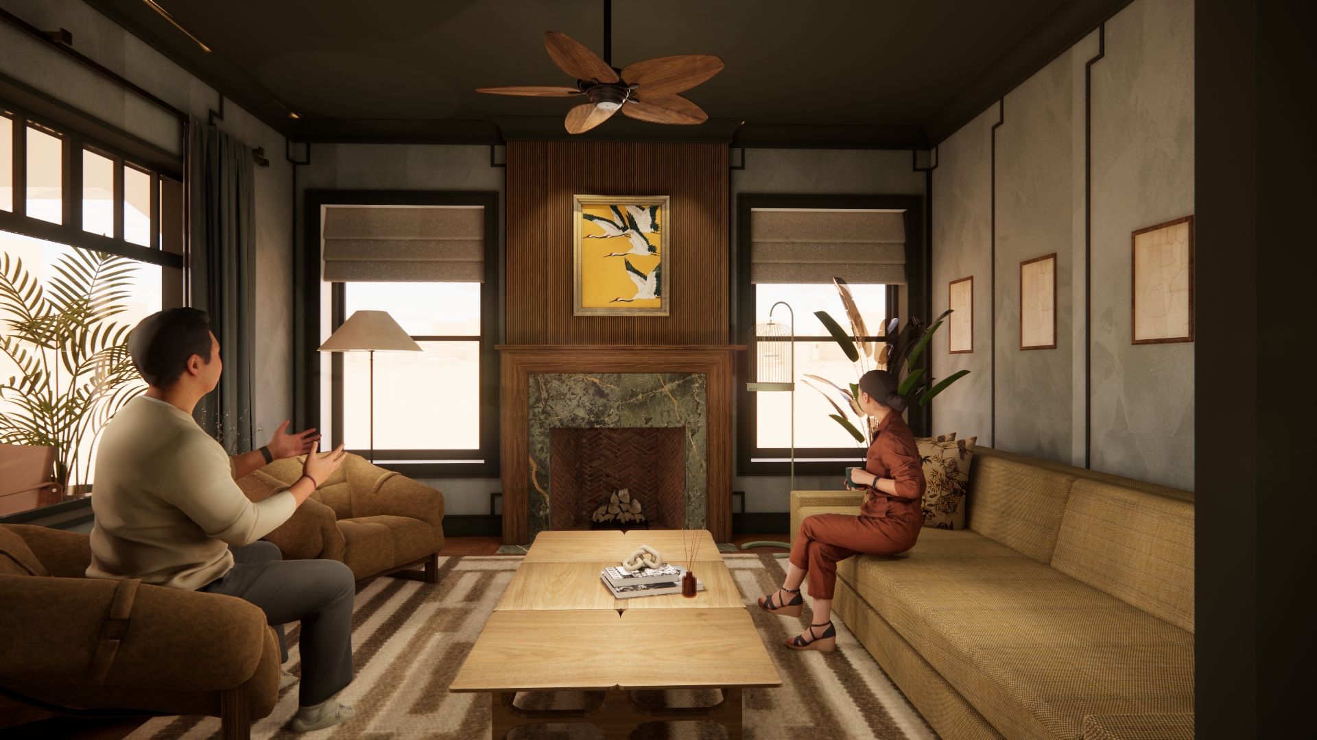 improve lighting increase realism keep high fidelity of floor texture and stone don t change floor texture don t change wall colors or architecture detailing