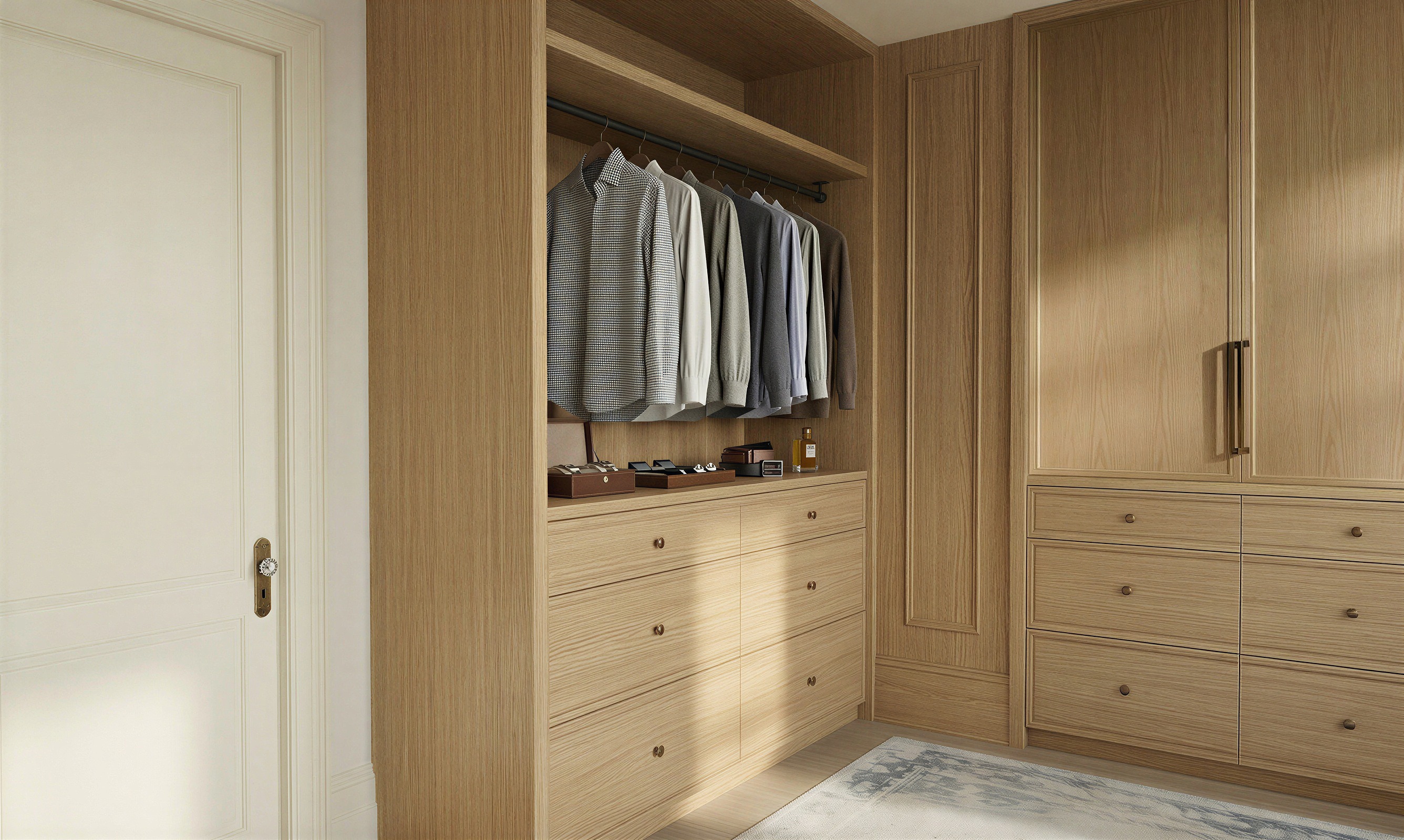 keep everything the same just add door on the shelving unit on the left side like on the right side so theres no clothing thats visible