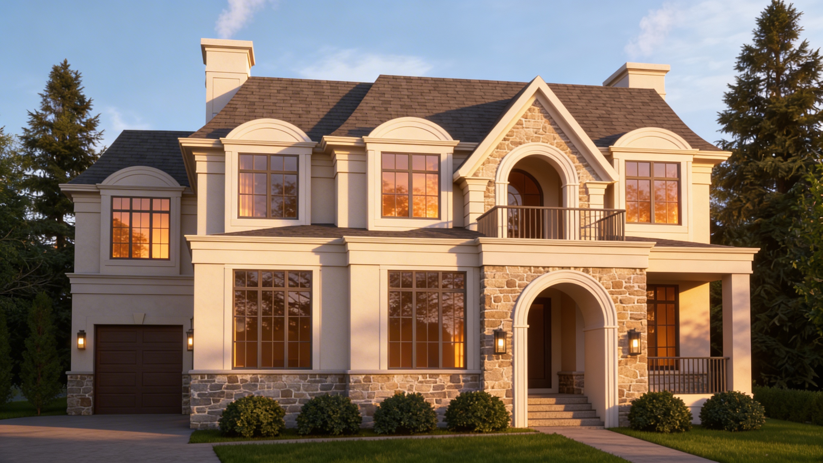 create rendering with white siding and black windows