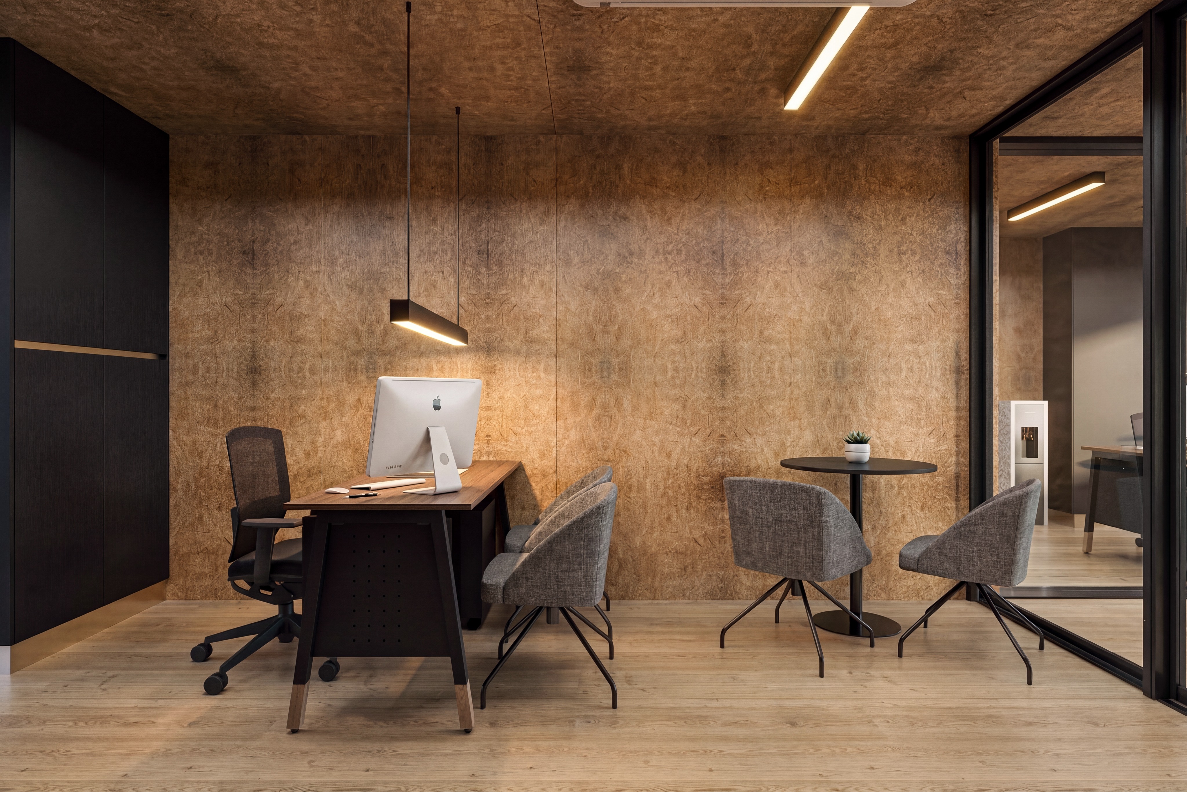 only change the table material from wood to grey like the remaining desk