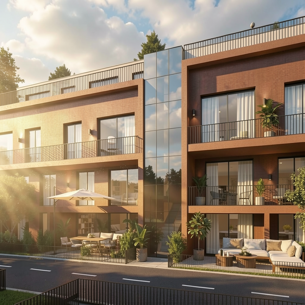 add some clouds and some tiny sunrays on the side hitting the building
